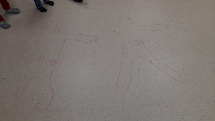 Pendant cette période, nous découvrons notre corps à travers différentes activités.Nous nommons les différentes parties du corps en traçant notre corps au sol. Nous apprenons les articulations en sport : en se tenant les chevilles pour former des chenilles. Nous apprenons à maîtriser notre axe central la colonne vertébrale en cheminant sur un parcours en gardant la tête bien droite. Nous bougeons, sautons et créons des parcours à l’aide de roues (matériel loué par l’UGSEL pendant toute la période).