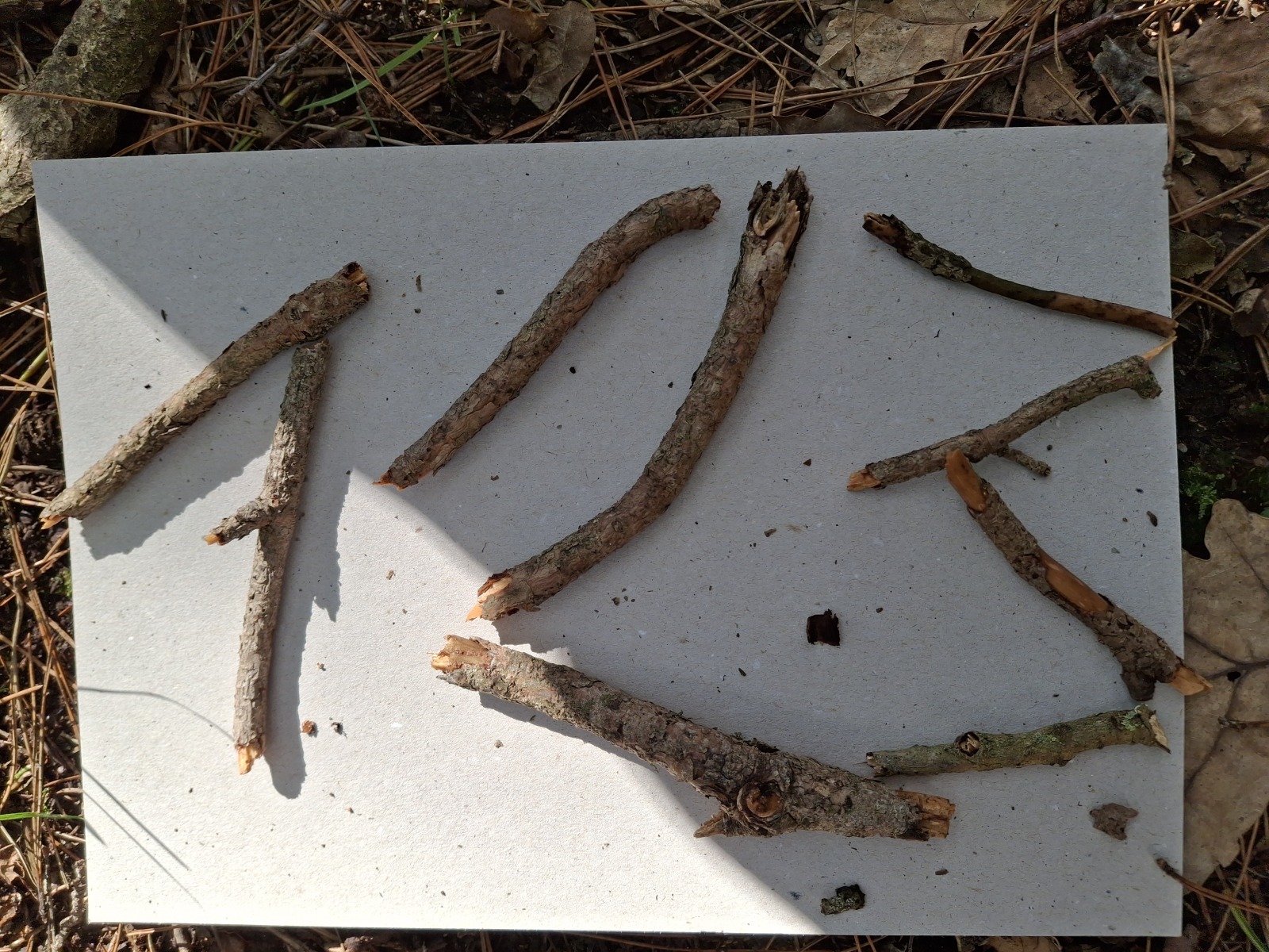 Ce vendredi, avec ce beau soleil, nous sommes allés travailler au bois des brosses.Avec des mamans, nous avons fait une chasse aux trésors de la nature : feuille, plume, gland, terre,…