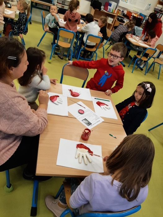 Une première matinée a servi pour préparer la pâte à sel et former l’empreinte de nos mains.