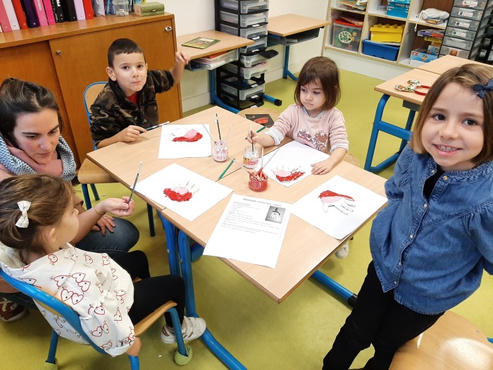 Une première matinée a servi pour préparer la pâte à sel et former l’empreinte de nos mains.