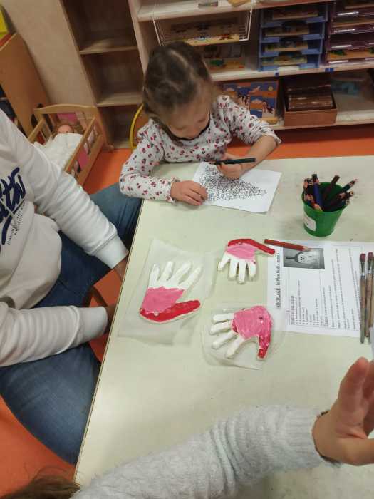 Une première matinée a servi pour préparer la pâte à sel et former l’empreinte de nos mains.