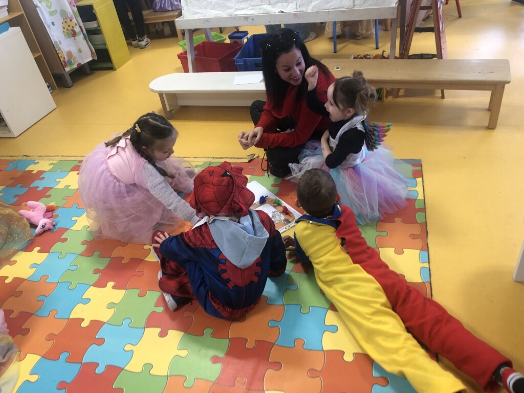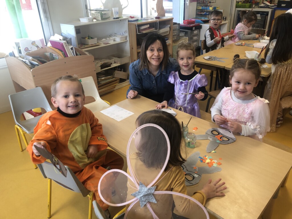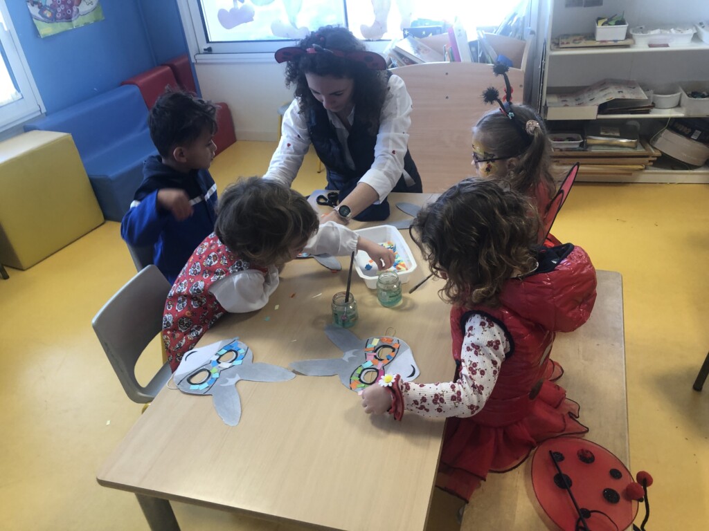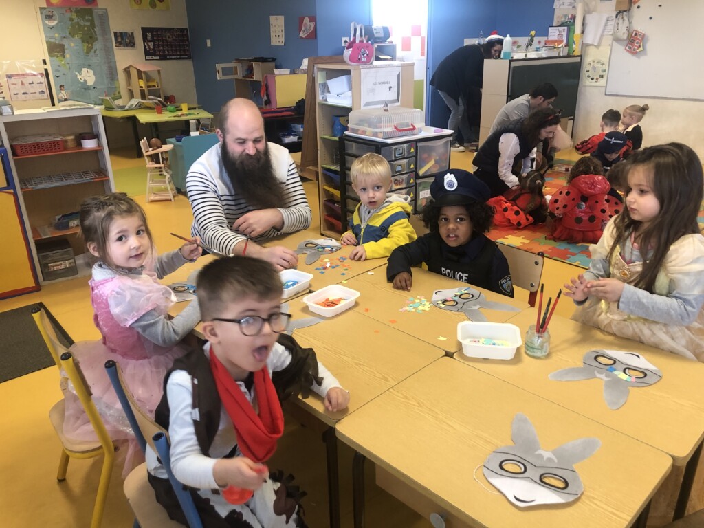 Le matin du carnaval, le samedi 29 Mars, des parents sont venus en classe pour réaliser des activités : décoration d’un masque et d’une maracas, et jeux de société. Puis nous avons défilé dans les rues de la Boissière sous les confettis !