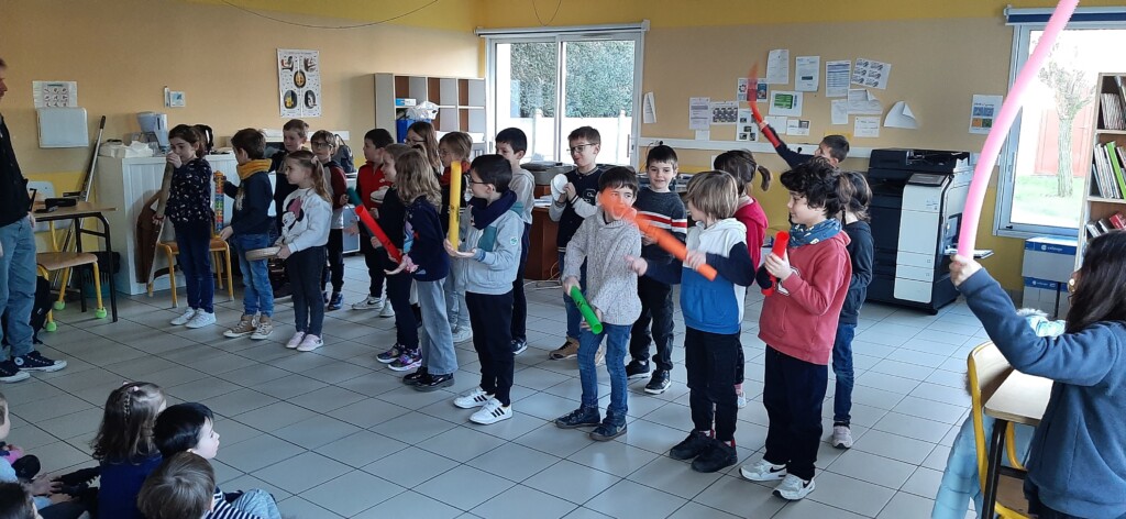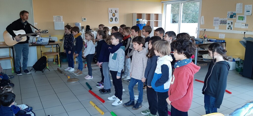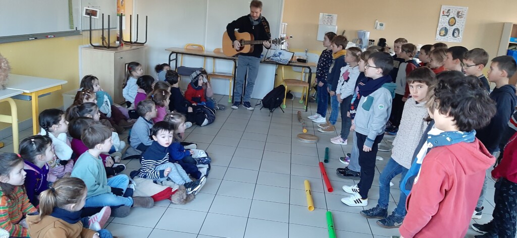 Les élèves de CE1 ont présenté les chants appris avec Claude (intervenant musical), devant les élèves de PS-MS de la classe de Bénédicte et Diane :