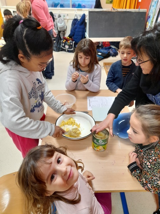 Jeudi, les élèves de CE2 nous ont rejoints pour confectionner des galettes avec l’aide de mamies et de mamans.En suivant la recette ci-dessous, chaque groupe a pu réaliser sa galette. Merci aux accompagnatrices.