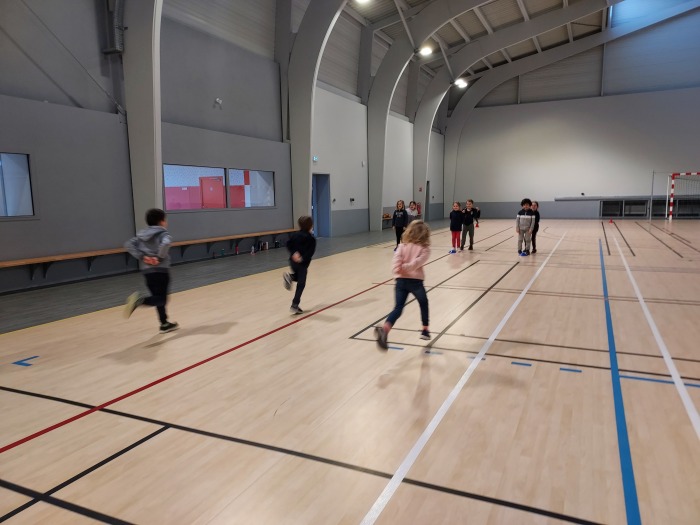 Chaque semaine, nous nous entrainons à courir, à faire des parcours avec slaloms et sauts de haies, nous réalisons des gammes pour bien progresser en course et en coordination.  Nous avons aussi travaillé le saut en hauteur sur des tapis. Enfin, nous avons testé différents lancers (médecine ball, vortex, anneau…).