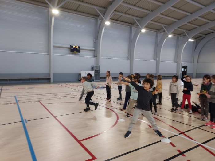 Chaque semaine, nous nous entrainons à courir, à faire des parcours avec slaloms et sauts de haies, nous réalisons des gammes pour bien progresser en course et en coordination.  Nous avons aussi travaillé le saut en hauteur sur des tapis. Enfin, nous avons testé différents lancers (médecine ball, vortex, anneau…).