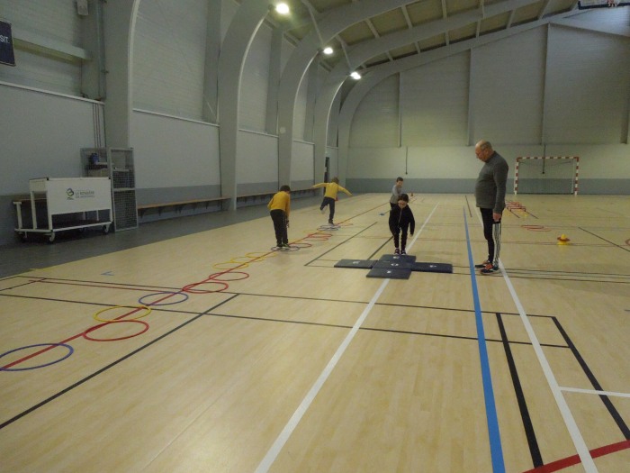 Chaque semaine, nous nous entrainons à courir, à faire des parcours avec slaloms et sauts de haies, nous réalisons des gammes pour bien progresser en course et en coordination.  Nous avons aussi travaillé le saut en hauteur sur des tapis. Enfin, nous avons testé différents lancers (médecine ball, vortex, anneau…).