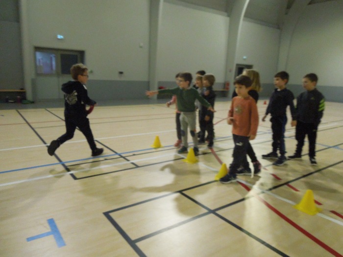 Chaque semaine, nous nous entrainons à courir, à faire des parcours avec slaloms et sauts de haies, nous réalisons des gammes pour bien progresser en course et en coordination. Nous avons aussi travaillé le saut en hauteur sur des tapis. Enfin, nous avons testé différents lancers (médecine ball, vortex, anneau…).