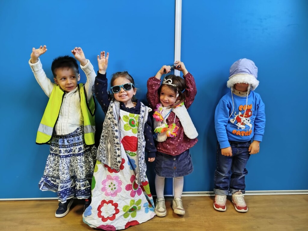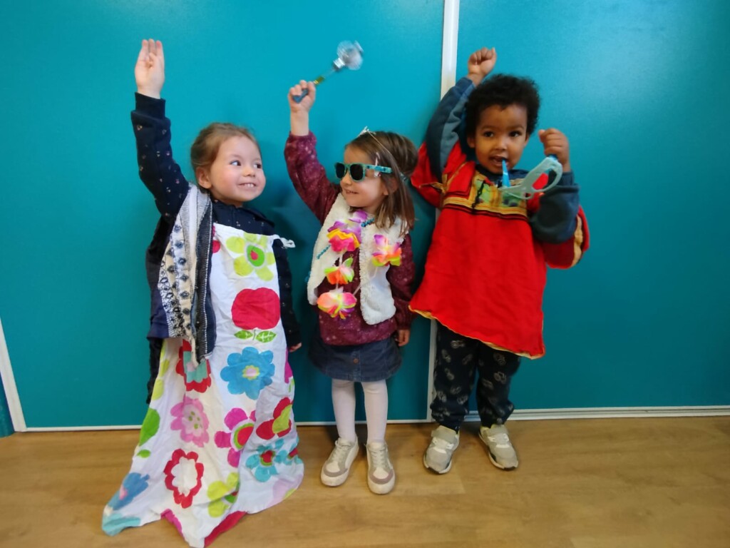 En attendant le samedi du carnaval, nous essayons les déguisements de la classe …….