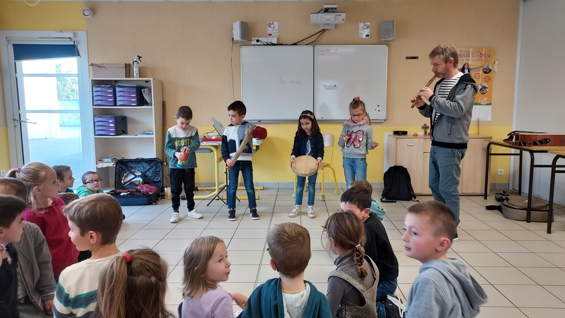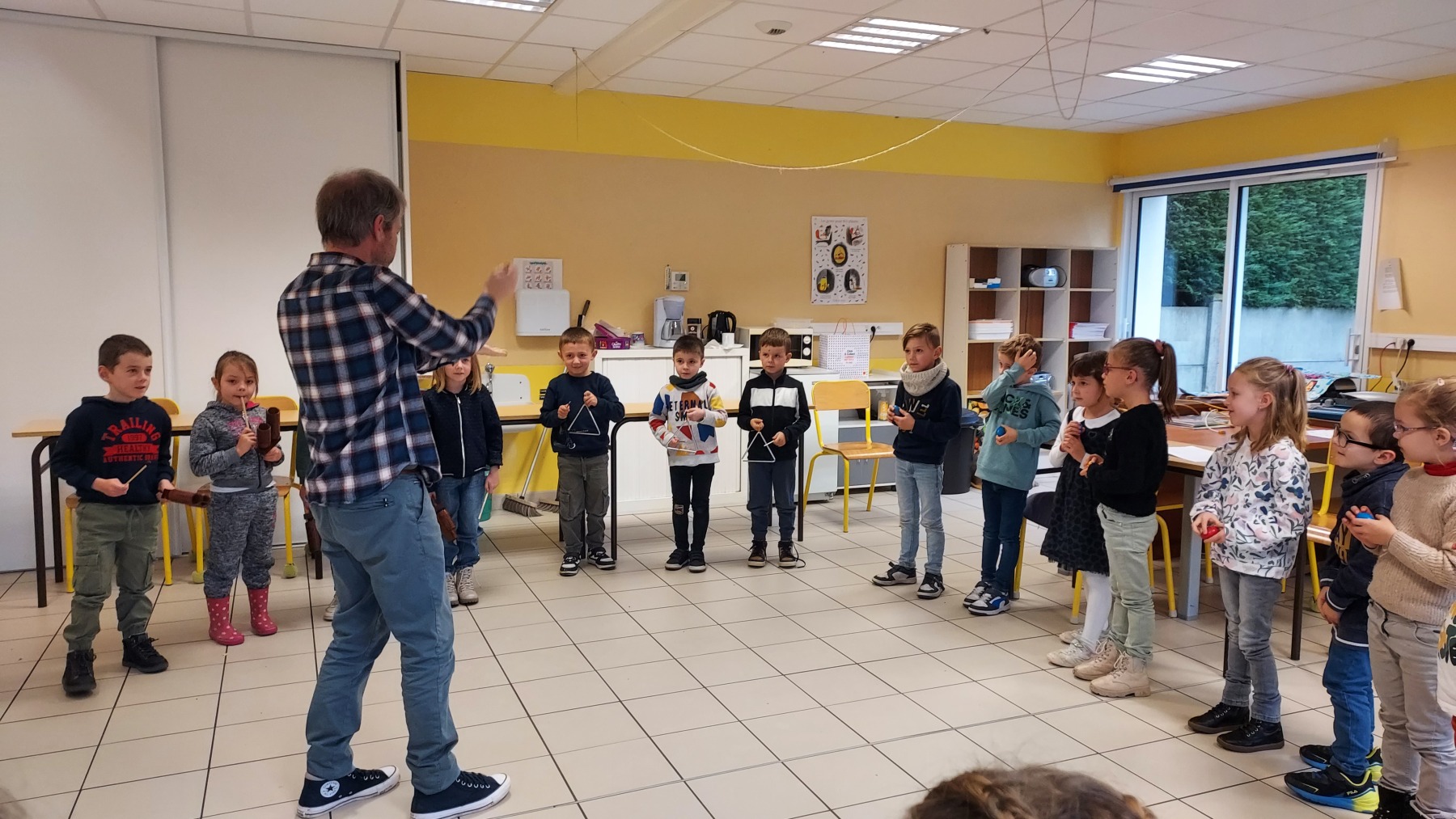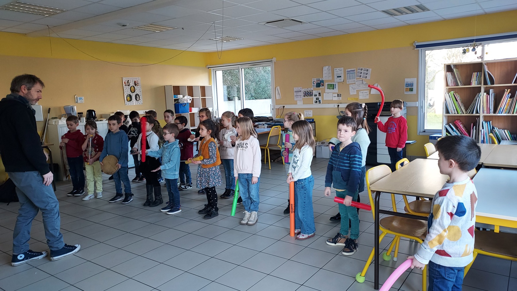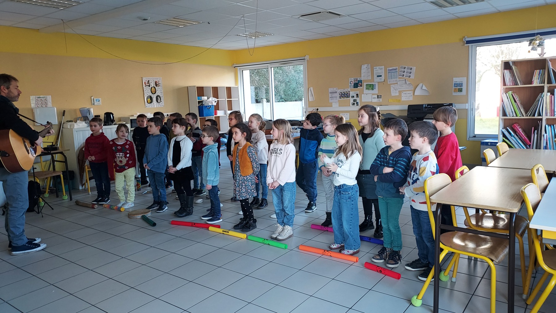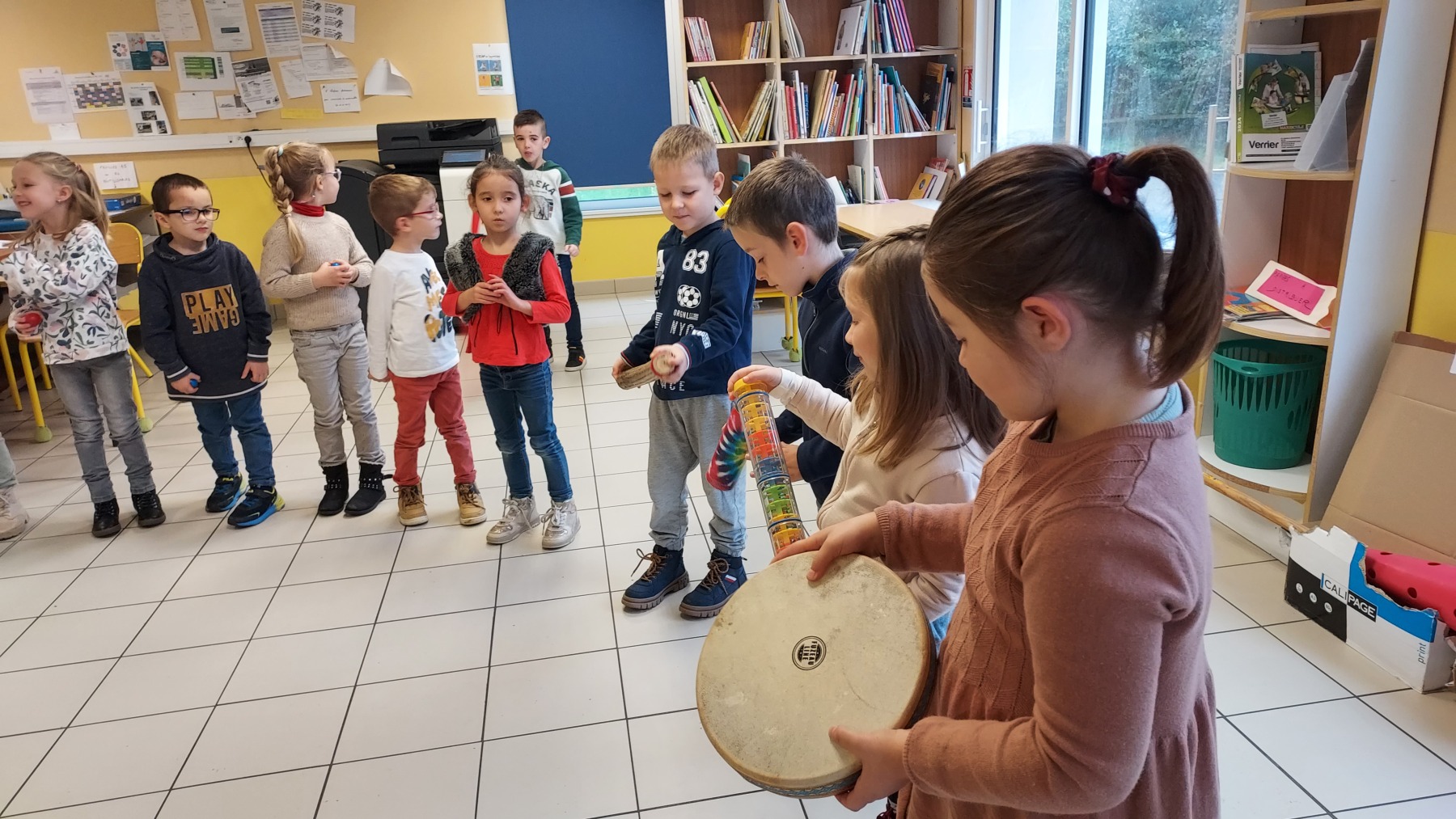 Nous avons eu 8 séances de musique avec Claude. L’occasion pour nous d’apprendre des chants (le bateau de papier et tue tue barima), de jouer des instruments de musique, de réaliser des rythmes…