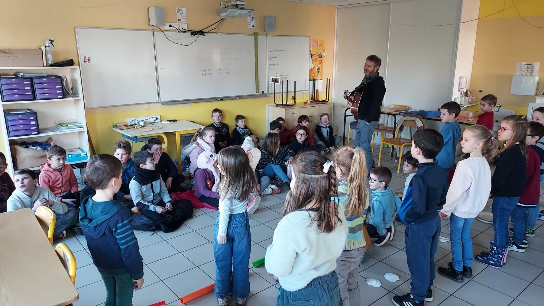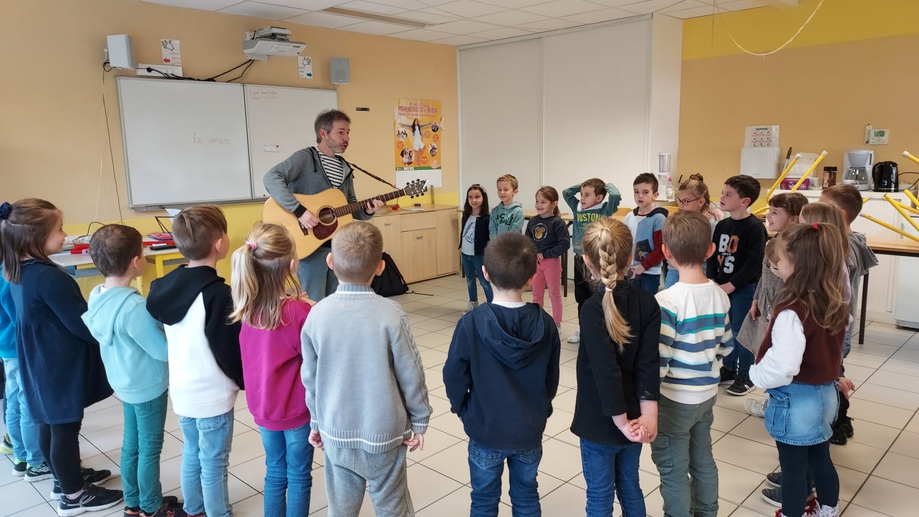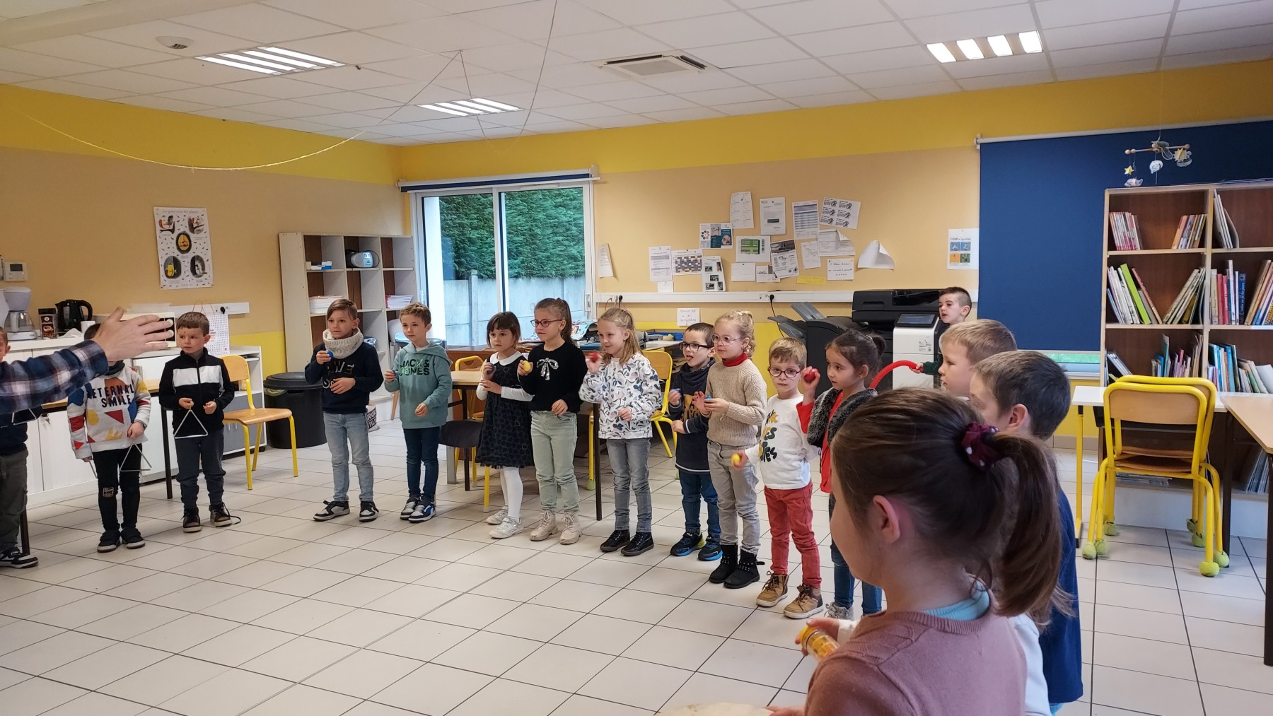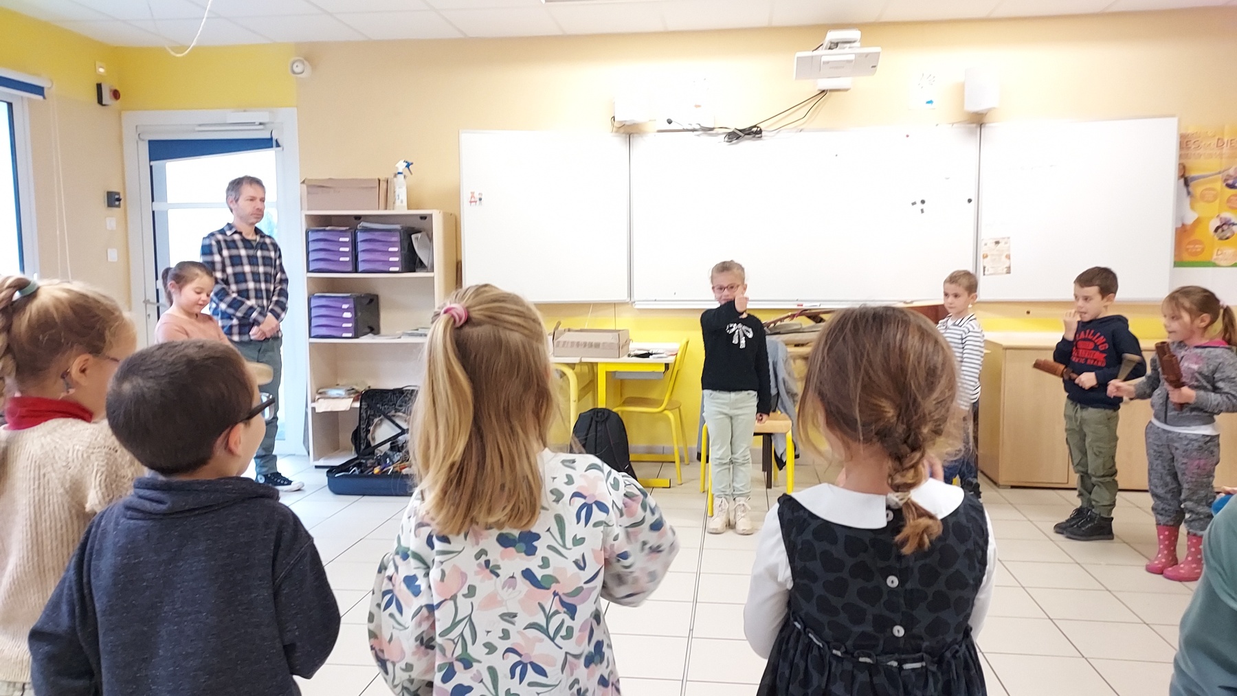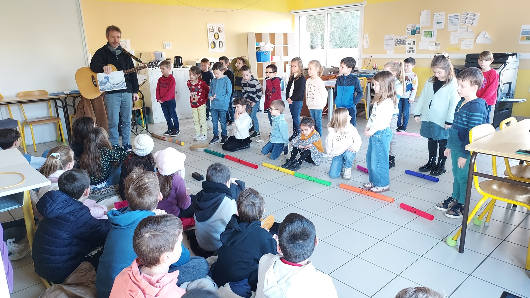 Nous avons eu 8 séances de musique avec Claude. L’occasion pour nous d’apprendre des chants (le bateau de papier et tue tue barima), de jouer des instruments de musique, de réaliser des rythmes…