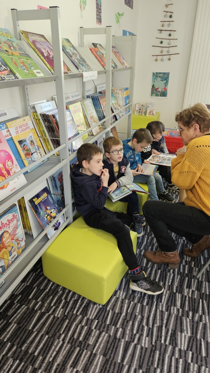 Depuis Novembre, nous allons à la bibliothèque pour découvrir les différents livres et en emprunter.