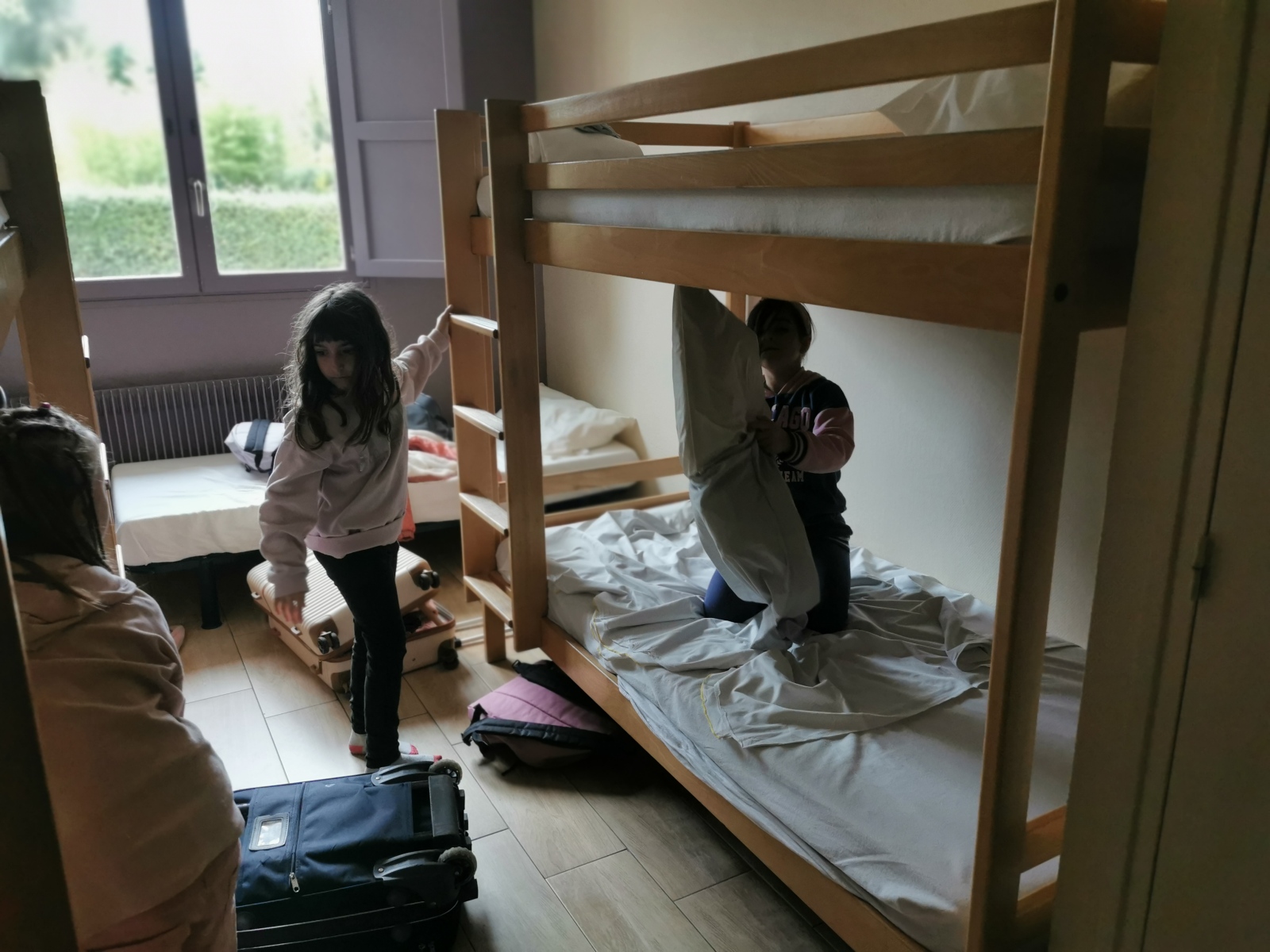 Enfin, le moment tant attendu est arrivé : la découverte de nos chambres ! Puis, arrivés au manoir, nous avons appris à faire un lit (pour certains) avant de prendre un bon repas bien mérité : carottes râpées, poulet/frites et fraisier ! Un délice !