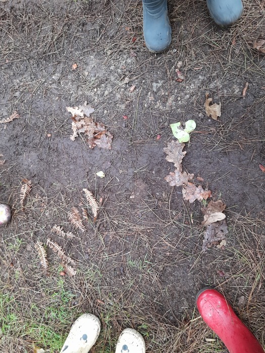 Chaussés de nos bottes, nous voilà au bois des brosses !Quelle joie de pouvoir courir dans les chemins ! Nous avons retrouvé notre bateau et notre feu !