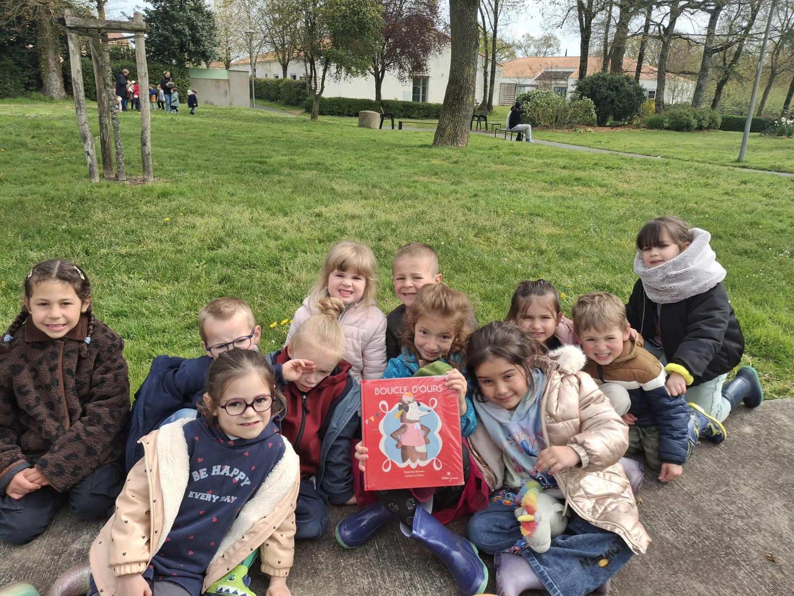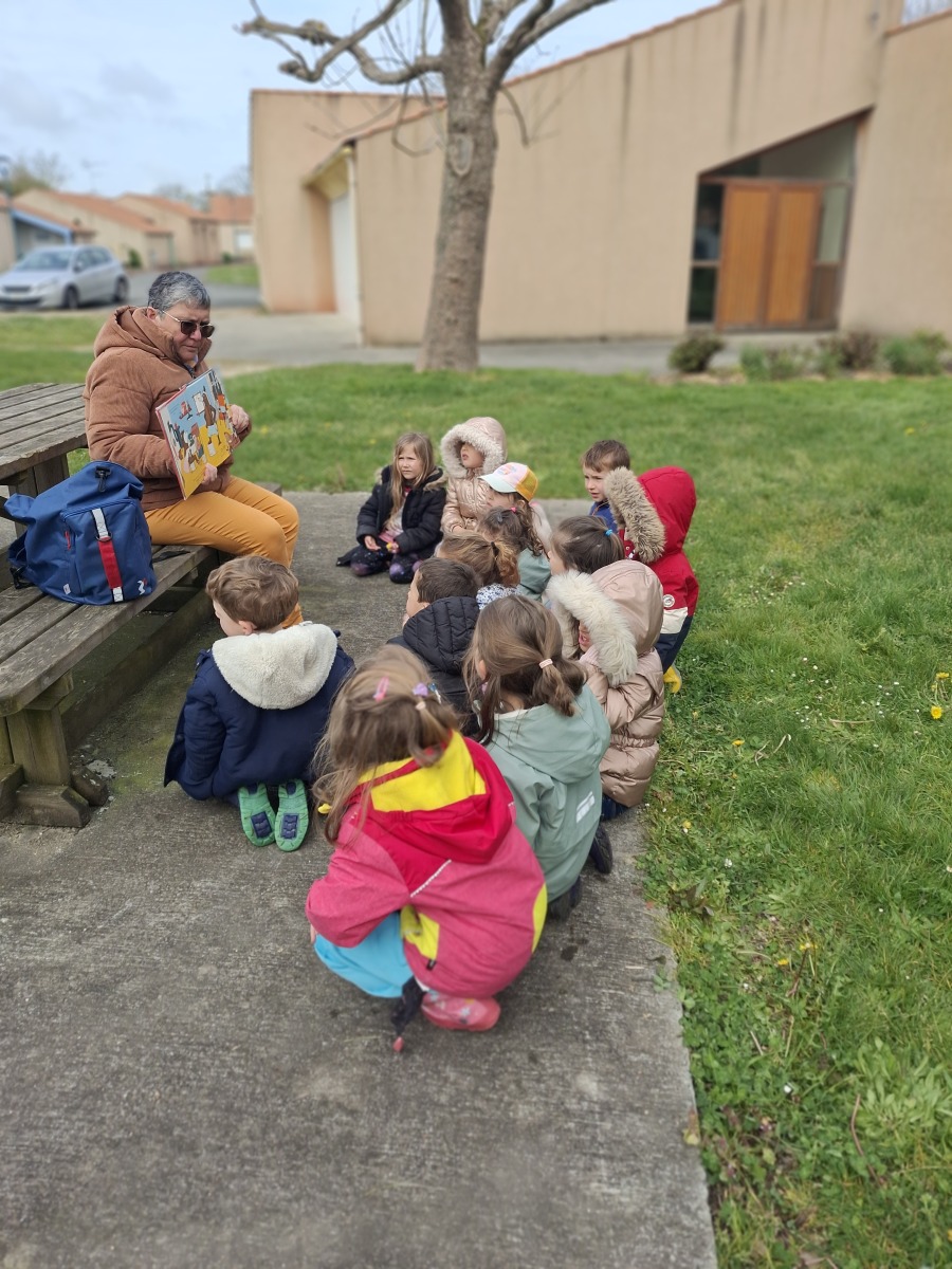 Ces 2 derniers mardis, nous avons profité de ce soleil pour écouter une histoire à l’extérieur.