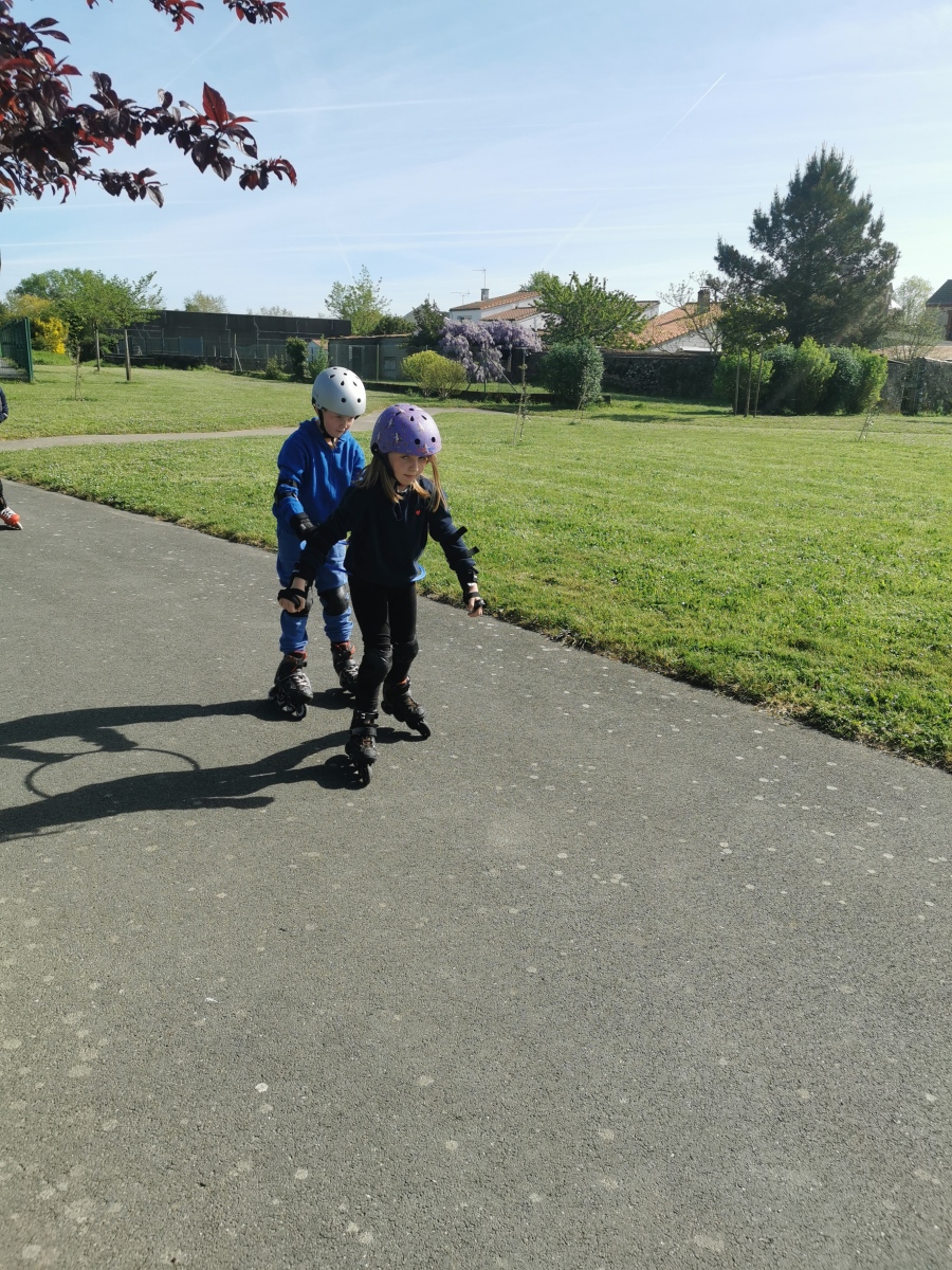 Ils ont pu apprendre à avancer sur des rollers, s’arrêter, faire des slaloms, se laisser glisser en se faisant tirer par un camarade, faire des relais… Les enfants ont adoré malgré les nombreuses chutes.