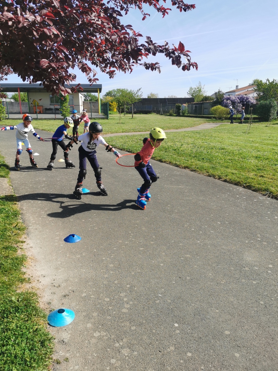 Ils ont pu apprendre à avancer sur des rollers, s’arrêter, faire des slaloms, se laisser glisser en se faisant tirer par un camarade, faire des relais… Les enfants ont adoré malgré les nombreuses chutes.