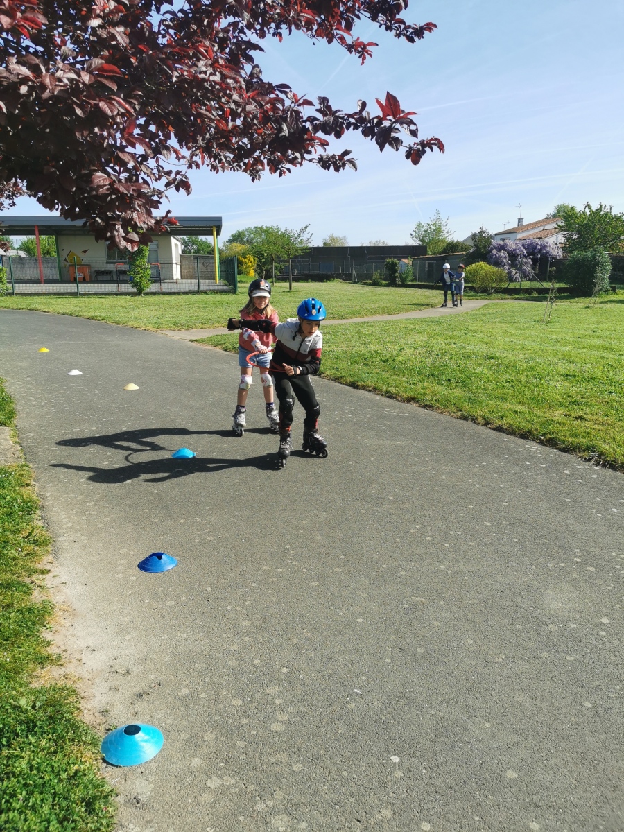 Ils ont pu apprendre à avancer sur des rollers, s’arrêter, faire des slaloms, se laisser glisser en se faisant tirer par un camarade, faire des relais… Les enfants ont adoré malgré les nombreuses chutes.