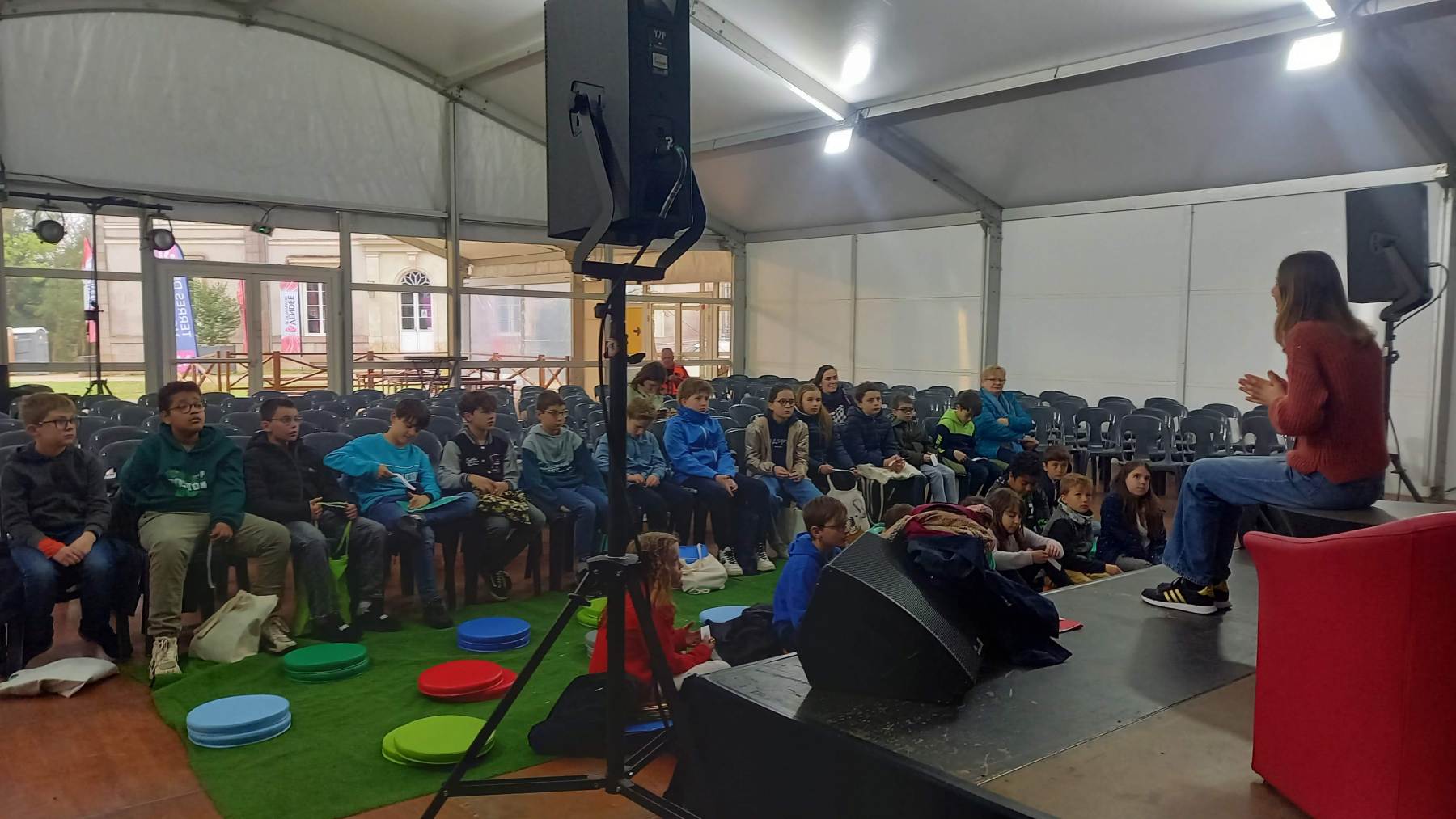 Vendredi 28 mars, les CM1-CM2 se sont rendus au Printemps du livre à Montaigu pour rencontrer Lilly-Belle de Chollet, jeune écrivaine de 26 ans. Durant toute la période, ils avaient découvert l’histoire passionnante d’Astrale dans le roman intitulé : La fabuleuse expédition d’Astrale : l’île aux mille récifs. En amont de cette rencontre, les élèves avaient préparé de nombreuses questions à poser à l’autrice sur son métier et le roman. Lilly-Belle y a répondu avec beaucoup d’enthousiasme. Un grand merci à elle.