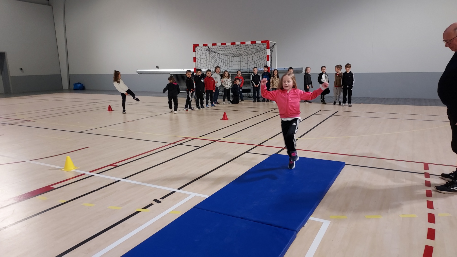 Chaque semaine, les élèves se sont entraînés à courir, à courir en relais, faire des slaloms, des sauts de haies. Ils réalisaient des gammes pour travailler la coordination.  Ils ont découvert le saut en hauteur, en longueur ainsi que le lancer de medecine ballon, de vortex ou d’anneau.