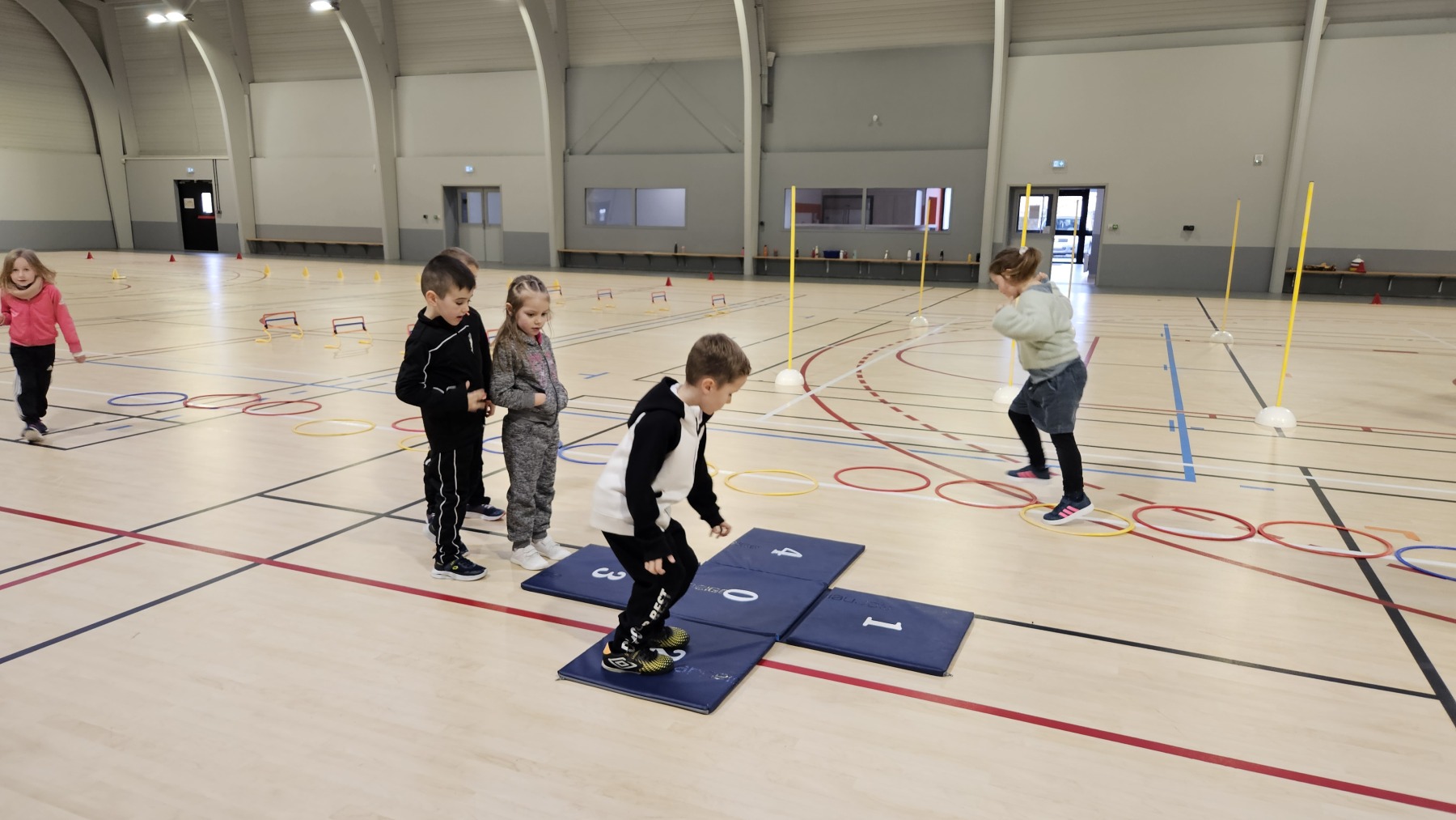 Chaque semaine, les élèves se sont entraînés à courir, à courir en relais, faire des slaloms, des sauts de haies. Ils réalisaient des gammes pour travailler la coordination.  Ils ont découvert le saut en hauteur, en longueur ainsi que le lancer de medecine ballon, de vortex ou d’anneau.