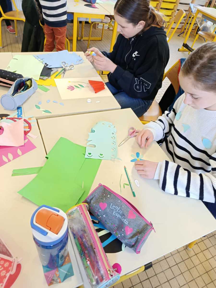 Les élèves de CE2, CM1 et CM2 ont pu participer ensemble à des ateliers de bricolage sur le thème du printemps et du carnaval en réalisant des masques, des pots de fleurs et des oiseaux. Leurs beaux travaux décorent maintenant nos classes.