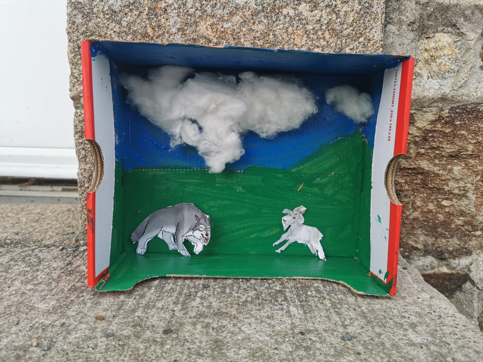 Après un rallye lecture sur les contes traditionnels, les élèves de CE2 ont réalisé un projet en arts plastiques. Chaque enfant a pu réaliser une boite représentant un conte.