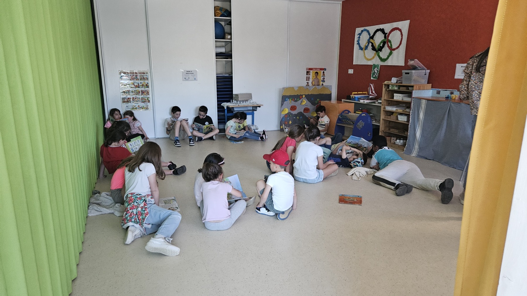 Pendant la sieste des PS/MS, les enfants ont joué ensemble à des jeux de société puis ils ont fait des jeux de mimes.