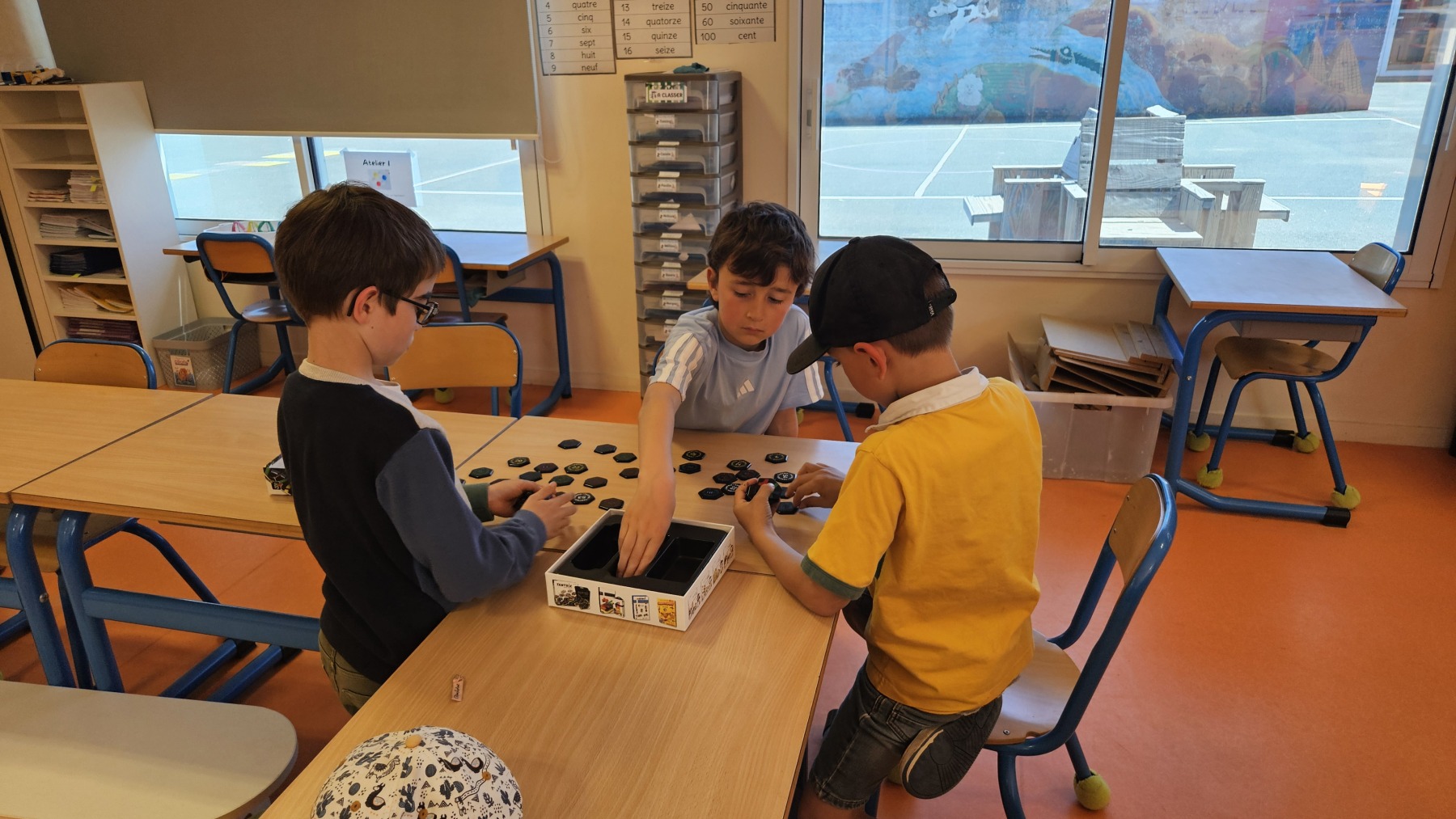 Pendant la sieste des PS/MS, les enfants ont joué ensemble à des jeux de société puis ils ont fait des jeux de mimes.