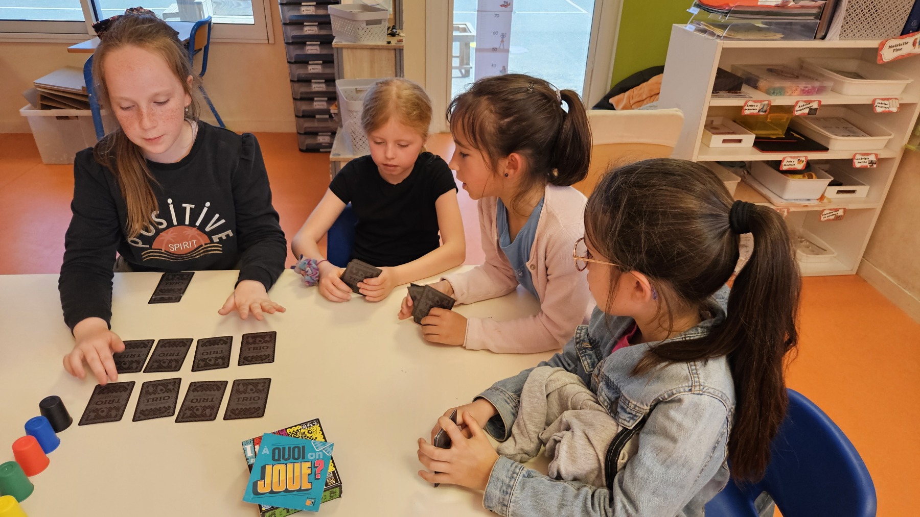 Pendant la sieste des PS/MS, les enfants ont joué ensemble à des jeux de société puis ils ont fait des jeux de mimes.