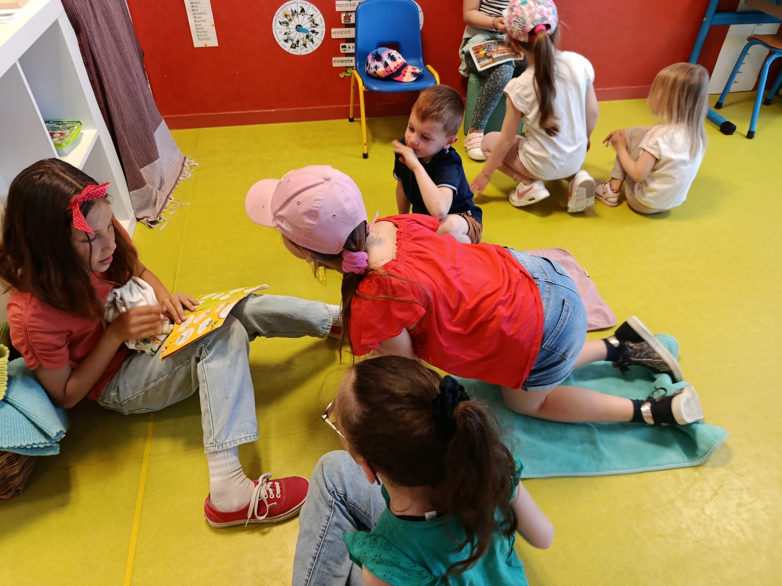 Pendant la sieste des PS/MS, les enfants ont joué ensemble à des jeux de société puis ils ont fait des jeux de mimes.