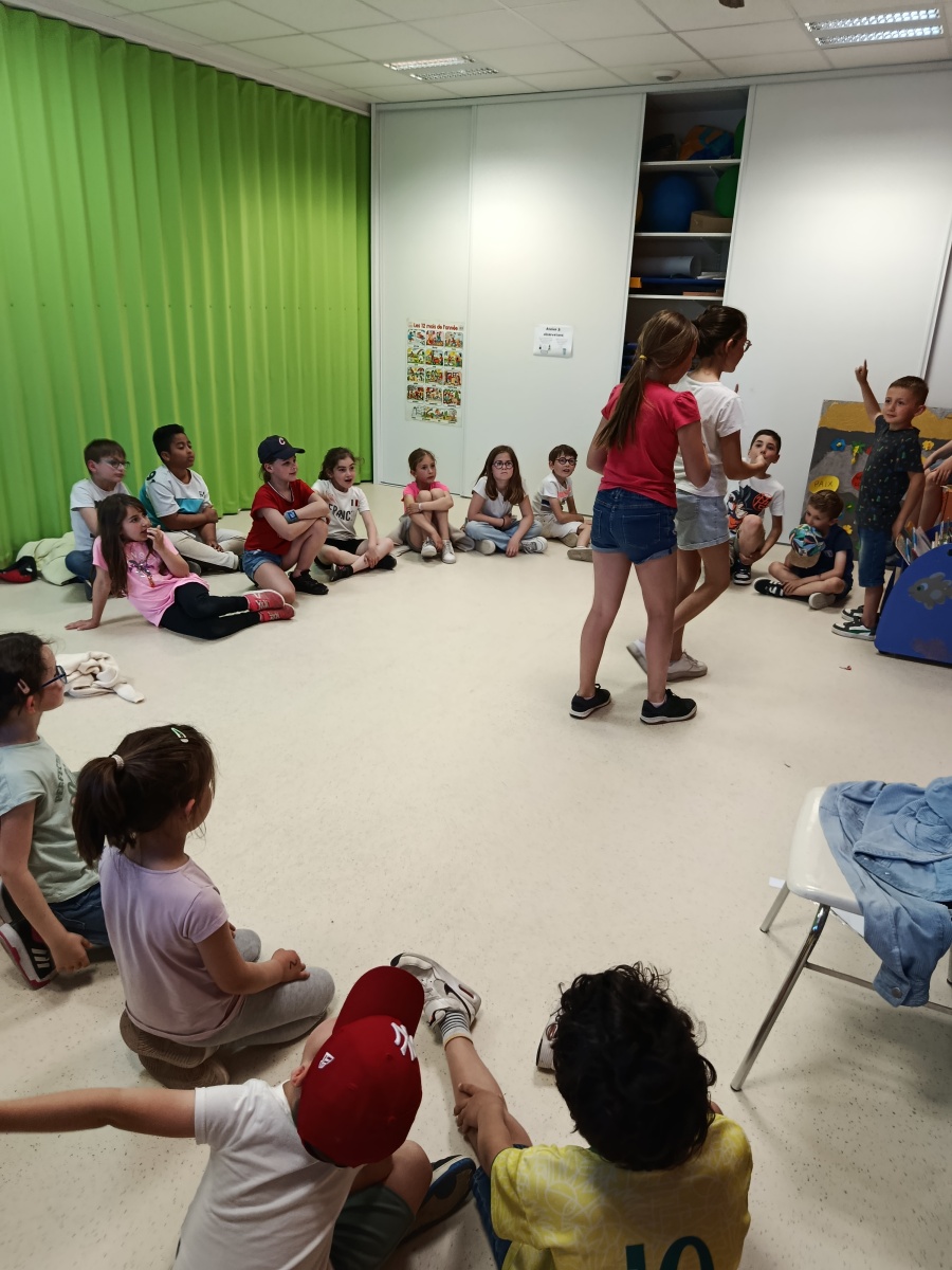 Pendant la sieste des PS/MS, les enfants ont joué ensemble à des jeux de société puis ils ont fait des jeux de mimes.