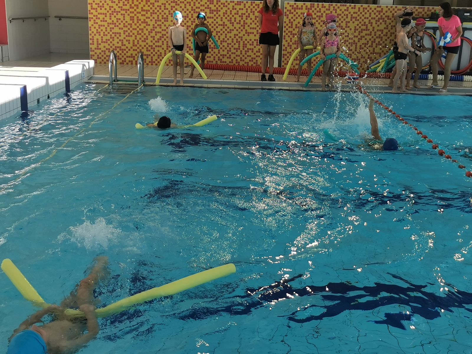 Dès le 11 septembre, tous les élèves de CE2 et CM1 ont repris le chemin de la piscine. Après 8 séances pendant lesquelles ils ont appris à plonger, à nager sur le ventre et le dos, à faire l’étoile de mer, à aller chercher des objets au fond du bassin. Ils ont tous bien progressé. Pour la dernière séance, ils ont pu profiter d’un parcours dans le grand bassin avec une structure gonflable, un toboggan, le tapis et enfin terminer dans le grand bain, pour leur plus grand bonheur!