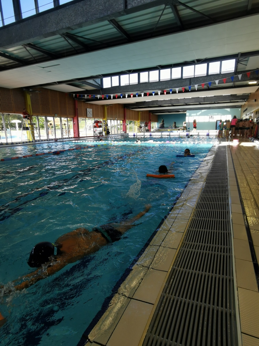 Dès le 11 septembre, tous les élèves de CE2 et CM1 ont repris le chemin de la piscine. Après 8 séances pendant lesquelles ils ont appris à plonger, à nager sur le ventre et le dos, à faire l’étoile de mer, à aller chercher des objets au fond du bassin. Ils ont tous bien progressé. Pour la dernière séance, ils ont pu profiter d’un parcours dans le grand bassin avec une structure gonflable, un toboggan, le tapis et enfin terminer dans le grand bain, pour leur plus grand bonheur!