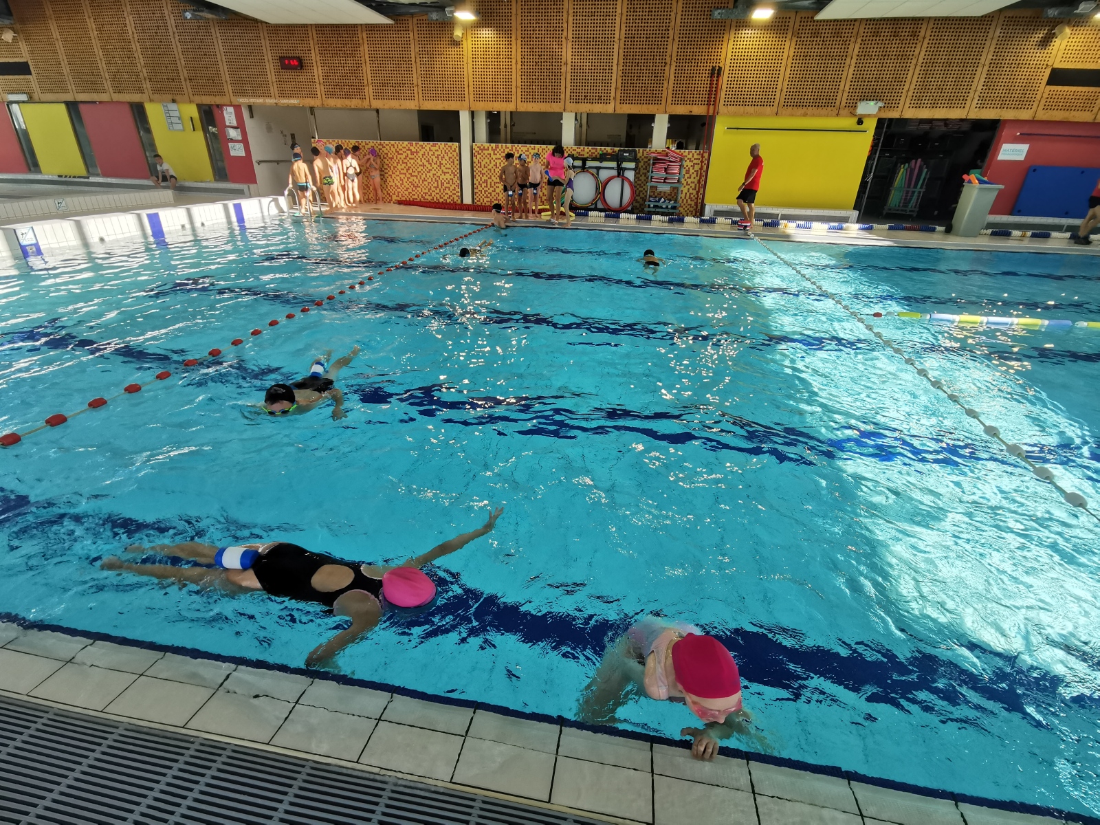Dès le 11 septembre, tous les élèves de CE2 et CM1 ont repris le chemin de la piscine. Après 8 séances pendant lesquelles ils ont appris à plonger, à nager sur le ventre et le dos, à faire l’étoile de mer, à aller chercher des objets au fond du bassin. Ils ont tous bien progressé. Pour la dernière séance, ils ont pu profiter d’un parcours dans le grand bassin avec une structure gonflable, un toboggan, le tapis et enfin terminer dans le grand bain, pour leur plus grand bonheur!