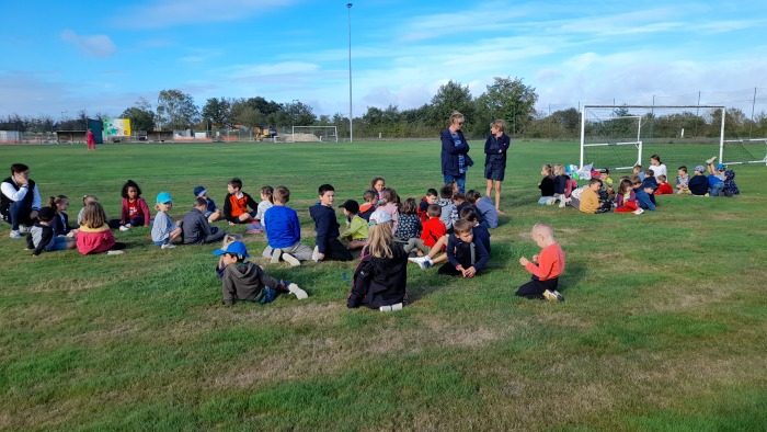 En effet, vendredi, tous les élèves de l’école se sont regroupés sur le terrain à côté de la salle de sports pour fêter cette nouvelle année : Plus vite, plus haut, plus fort ! Tous ensemble !