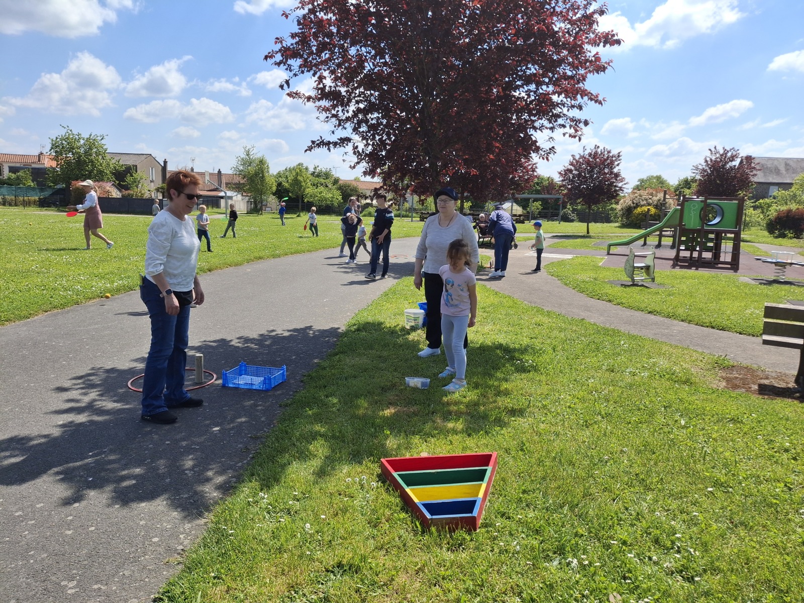 Nous avons joué au molkky, au lancer d’anneaux/palets, aux raquettes… Chacun a pris plaisir à jouer avec l’autre.