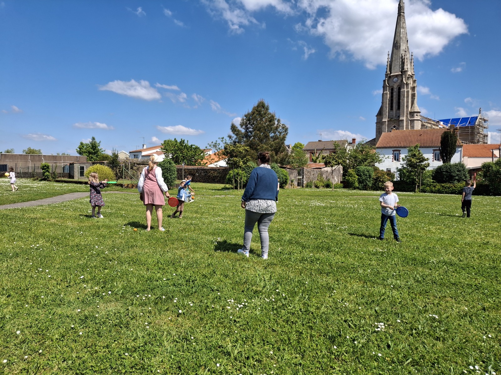 Nous avons joué au molkky, au lancer d’anneaux/palets, aux raquettes… Chacun a pris plaisir à jouer avec l’autre.