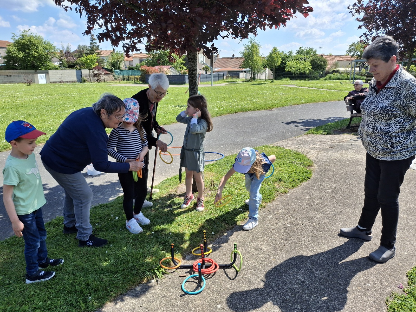 Nous avons joué au molkky, au lancer d’anneaux/palets, aux raquettes… Chacun a pris plaisir à jouer avec l’autre.