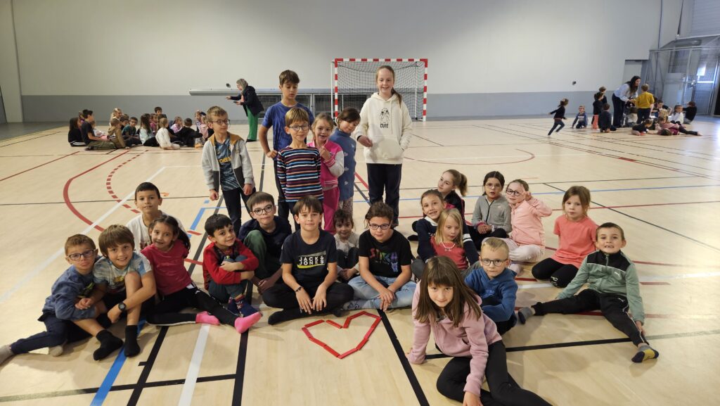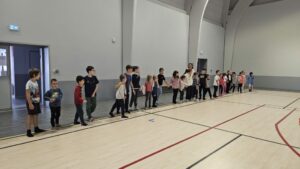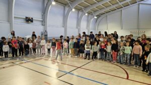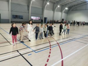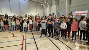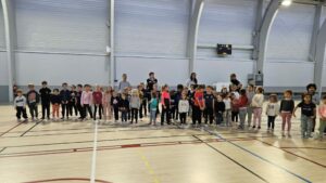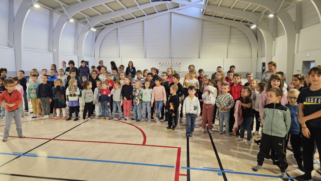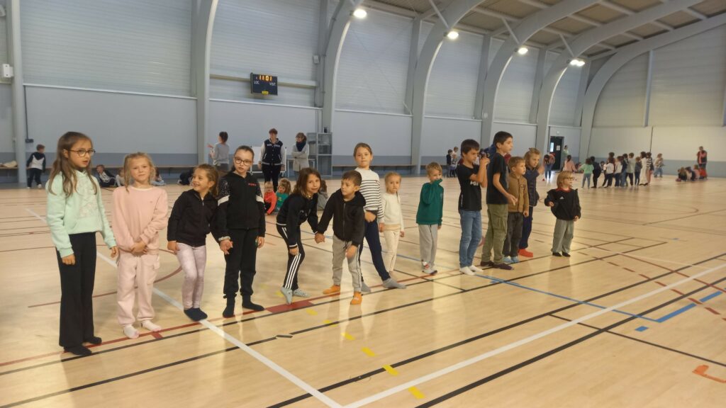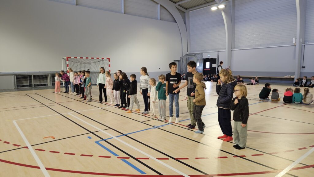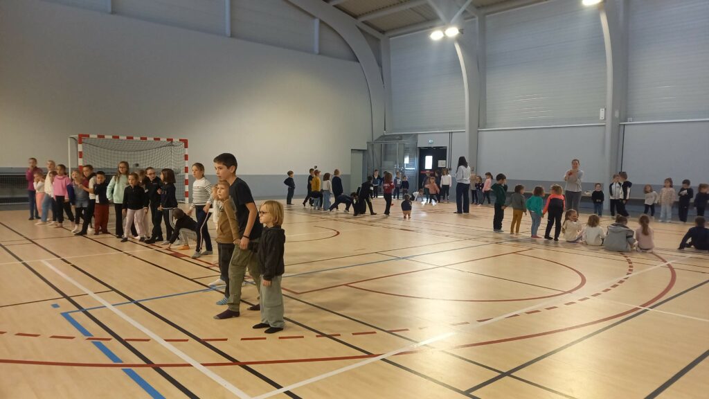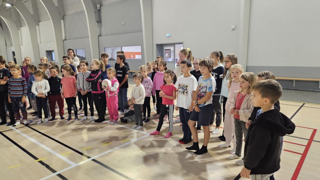 Ce matin, tous les élèves de l’école se sont retrouvés à la salle omnisports pour une rentrée sportive, un projet porté par la Fédération sportive éducative de l’enseignement Catholique (UGSEL).