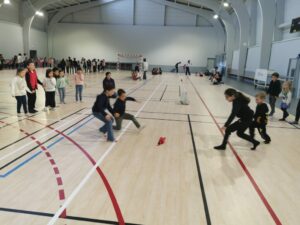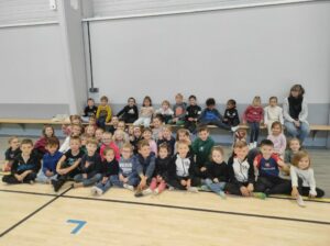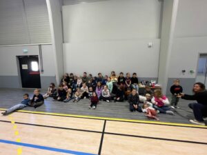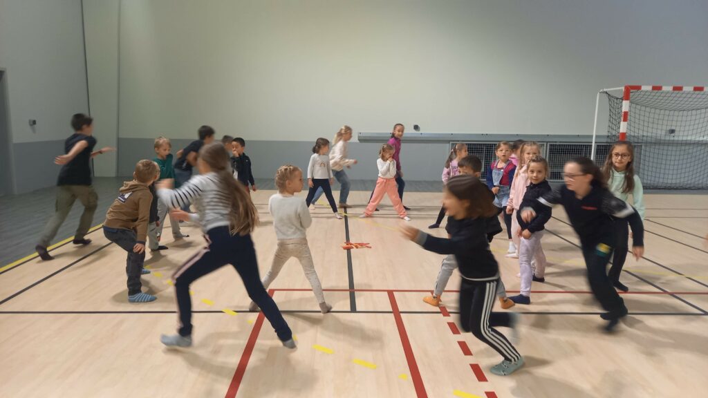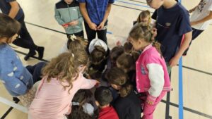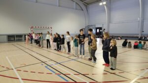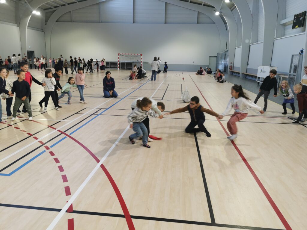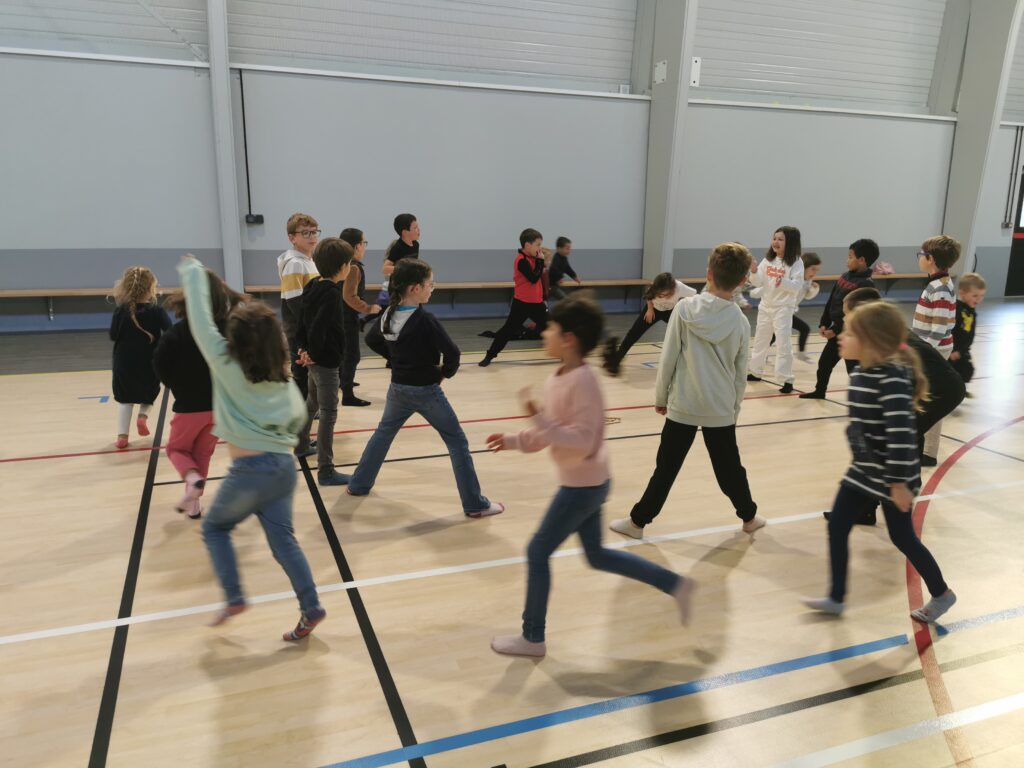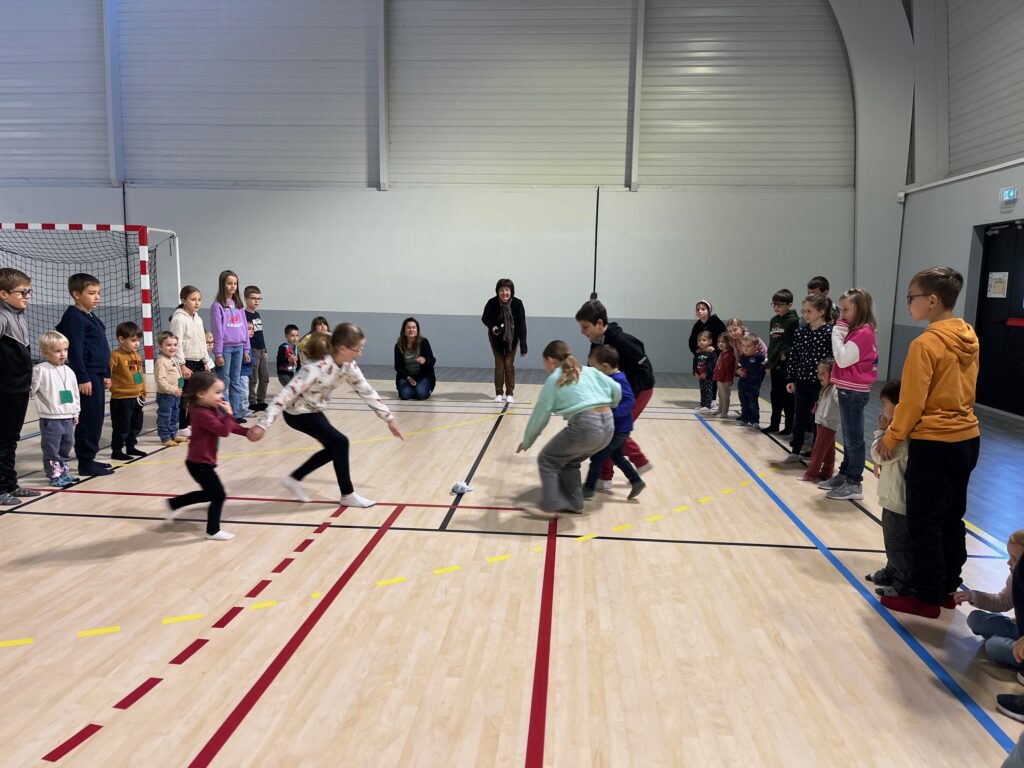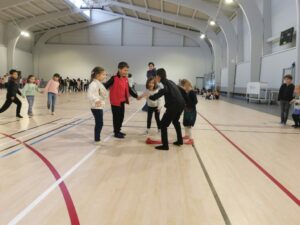 Ce matin, tous les élèves de l’école se sont retrouvés à la salle omnisports pour une rentrée sportive, un projet porté par la Fédération sportive éducative de l’enseignement Catholique (UGSEL).