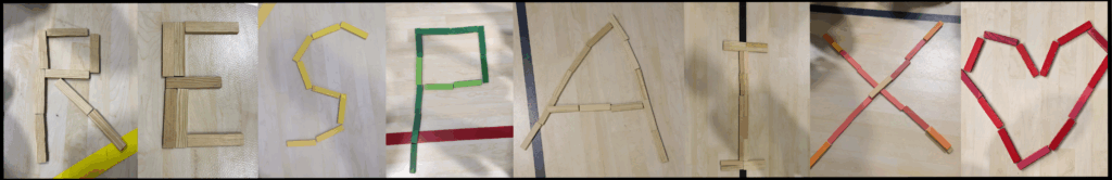 Chaque équipe devait, après les jeux, reconstituer les lettres du mot “RESPAIX” à l’aide kaplas récoltés.