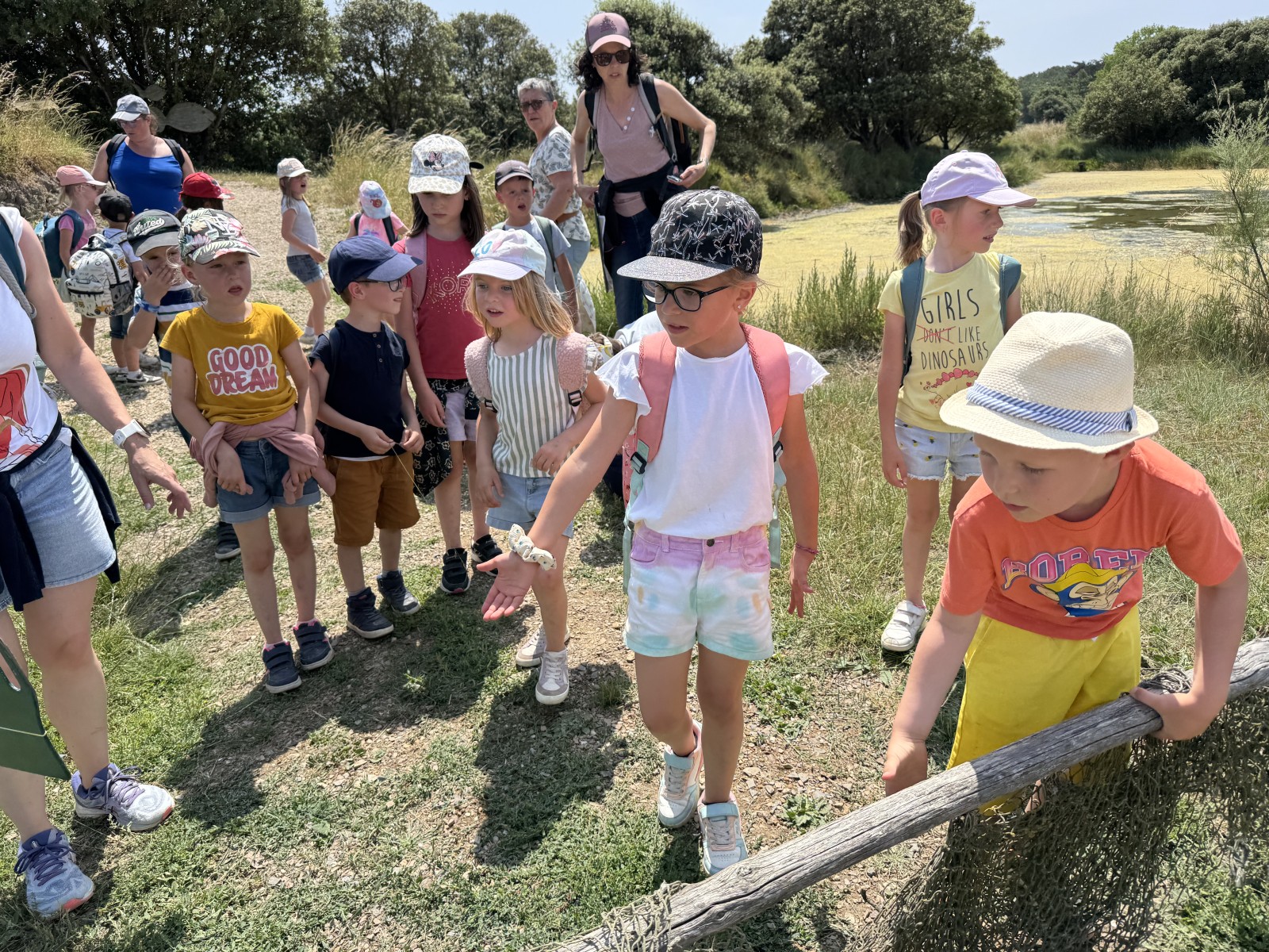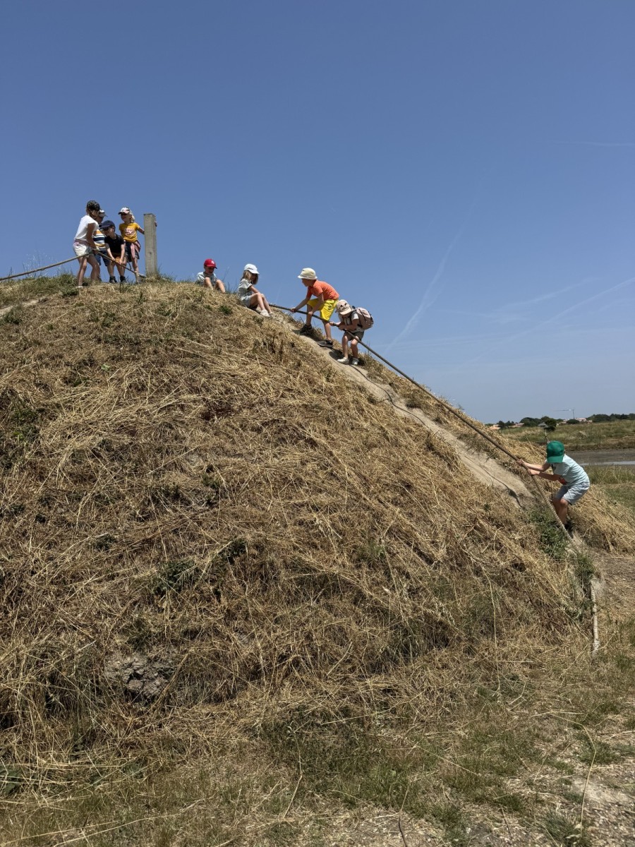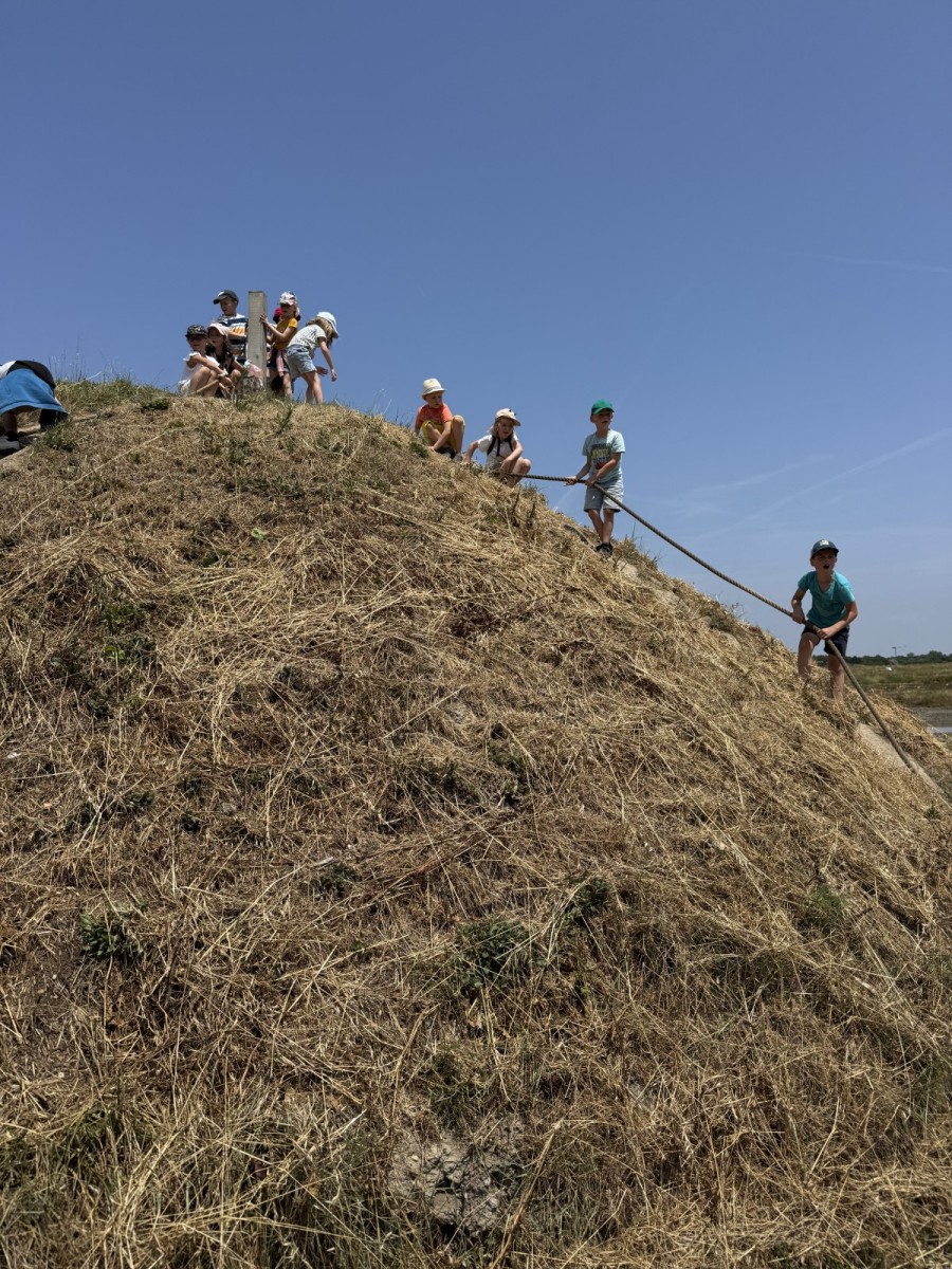 Après le pique-nique, le soleil est arrivé et les élèves ont pu découvrir le parc des marais salants. Nous avons appris que la mer, la terre d’argile, le soleil et le vent sont les éléments essentiels des marais salants.