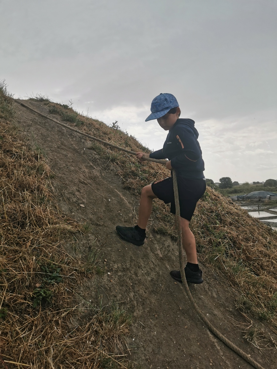 Des jeux ont fait le plus grand bonheur des élèves : descendre une butte grâce à une corde / les filets suspendus / bateau aménagé pour être de vrais moussaillons (dans un morutier ayant servi à la pêche à la morue).