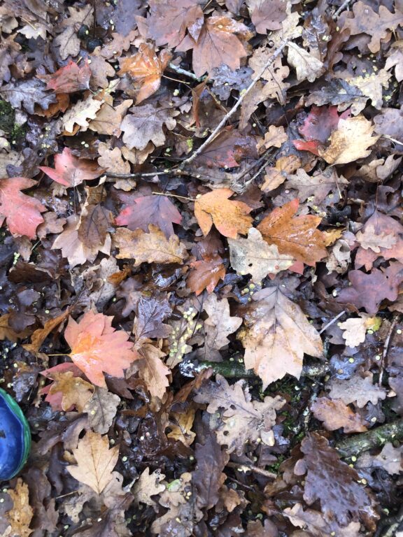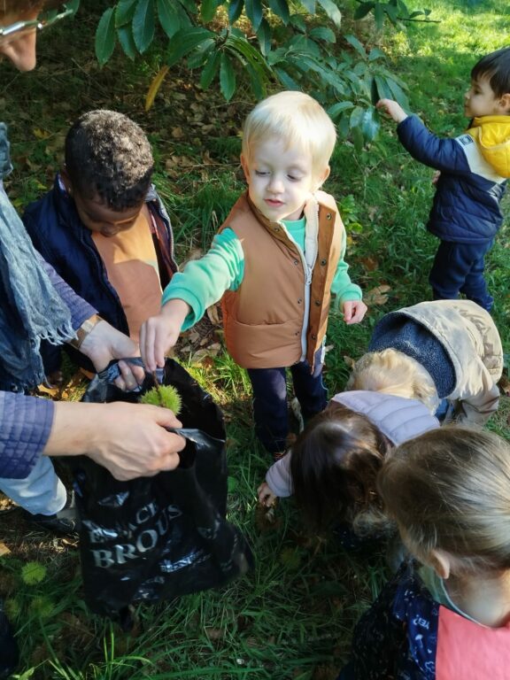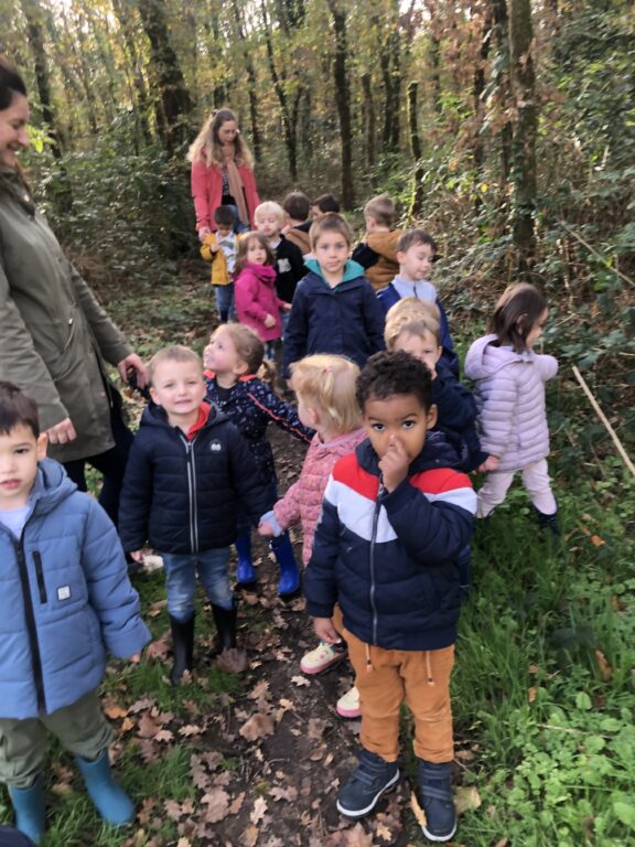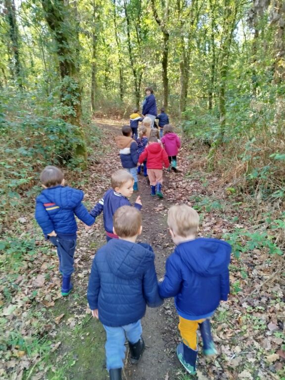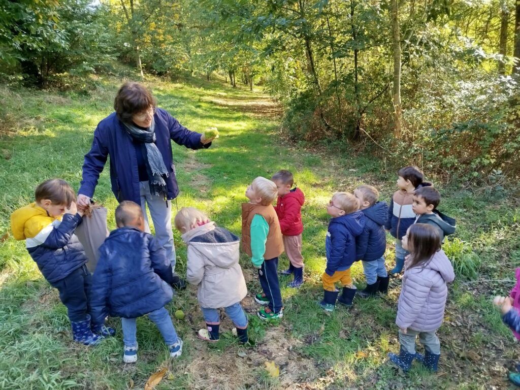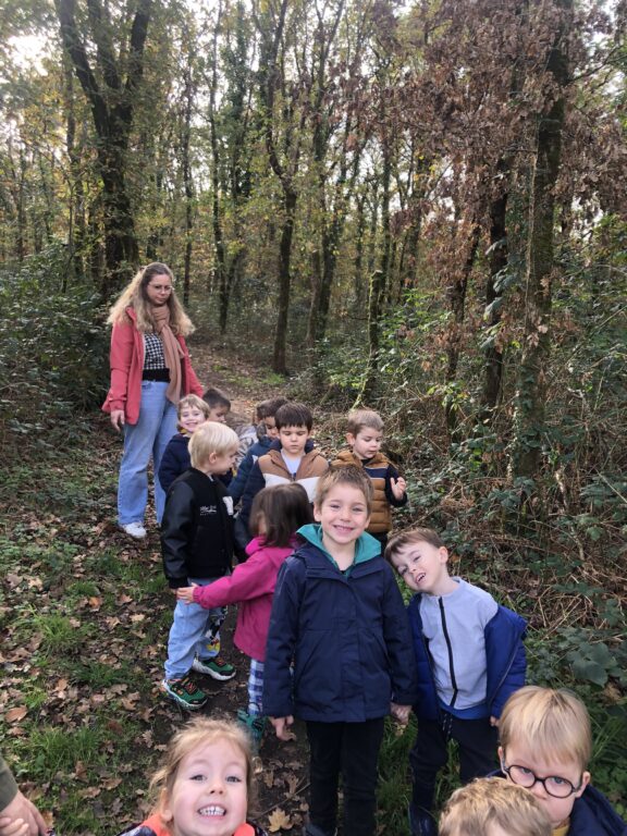 Nous sommes aussi allés dans le petit bois observer les feuilles tomber , et écouter une histoire “le piano des bois”